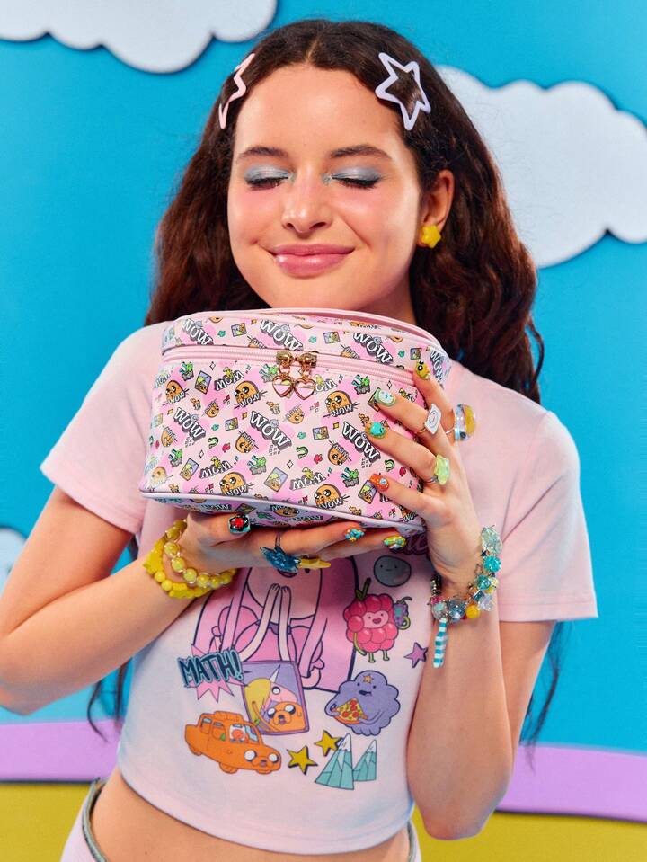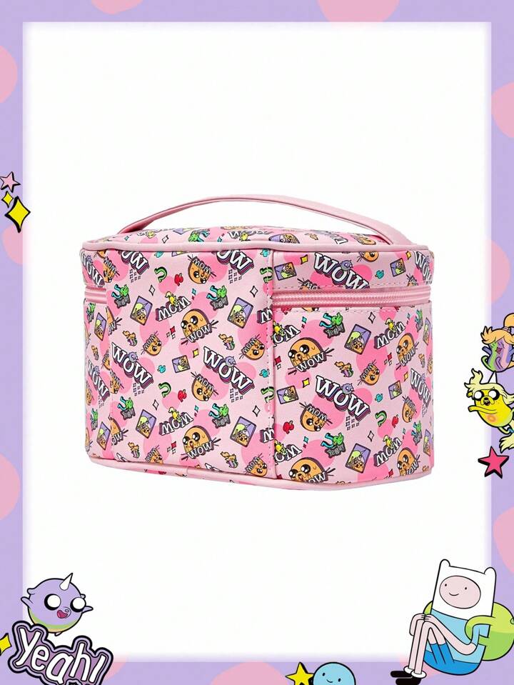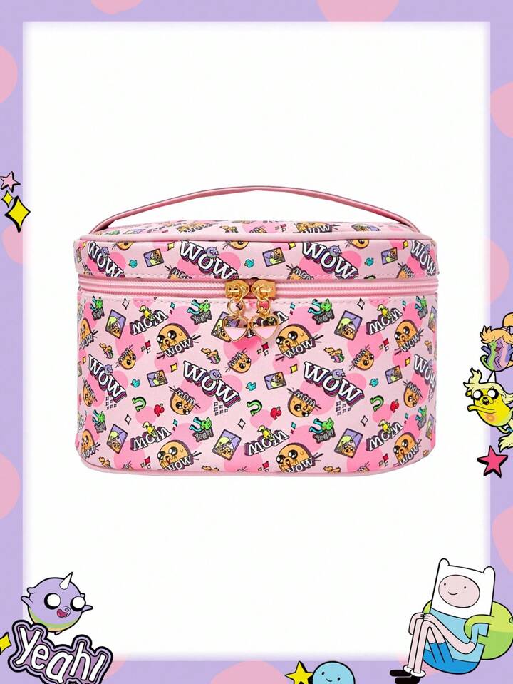 Adventure Time X ROMWE All Over Print Large Capacity Portable Flip-Top Cosmetic Bag