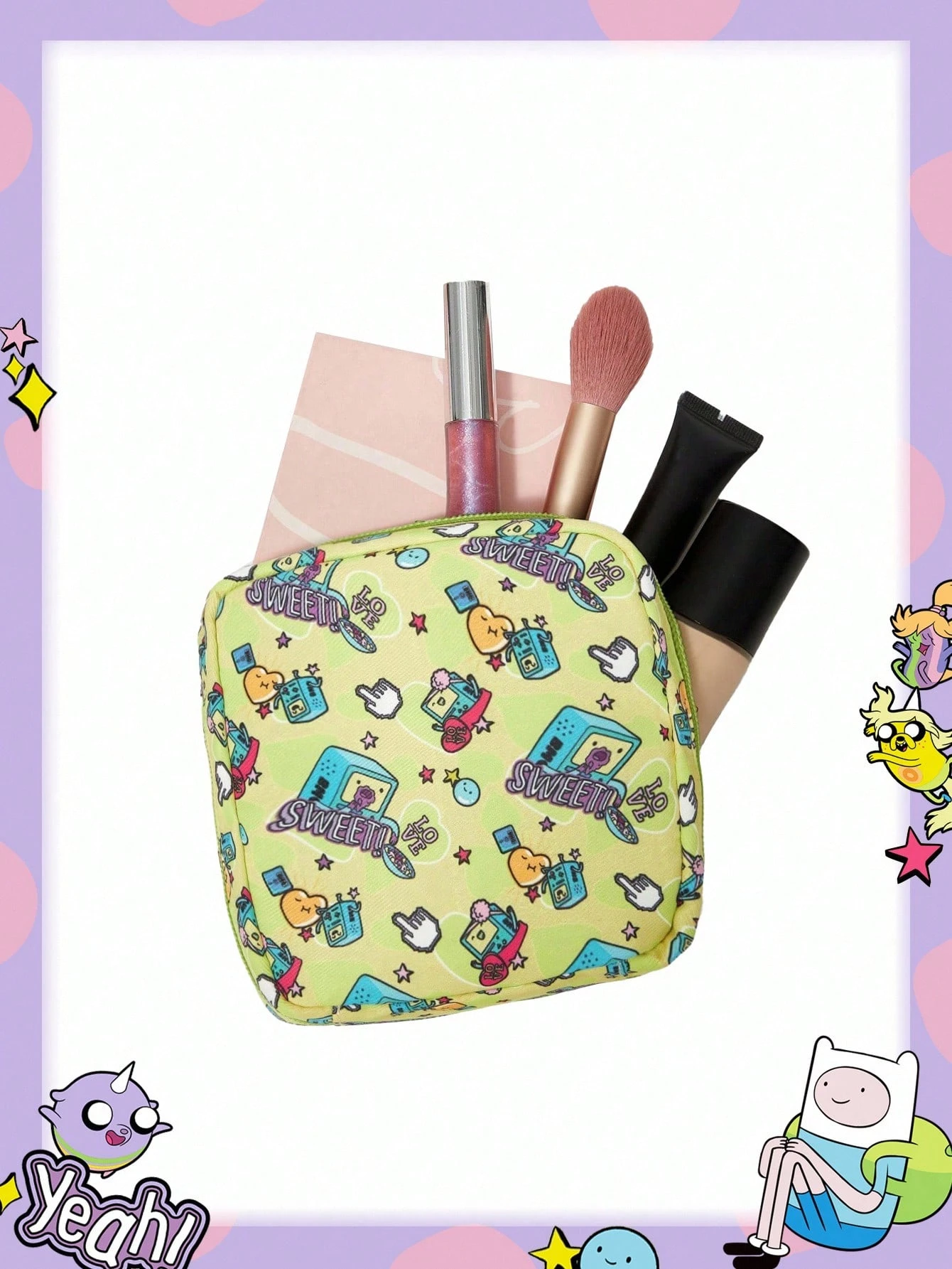 Adventure Time X ROMWE Thick Padded Large Capacity Portable Cosmetic Bag Mini Square Pouch