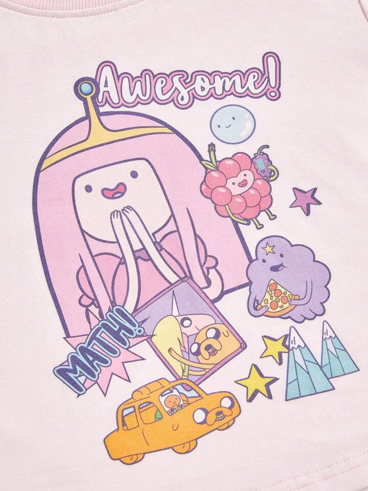 Adventure Time X ROMWE Women Cute Cartoon Print Fitted Cropped Pink T-Shirt, Summer