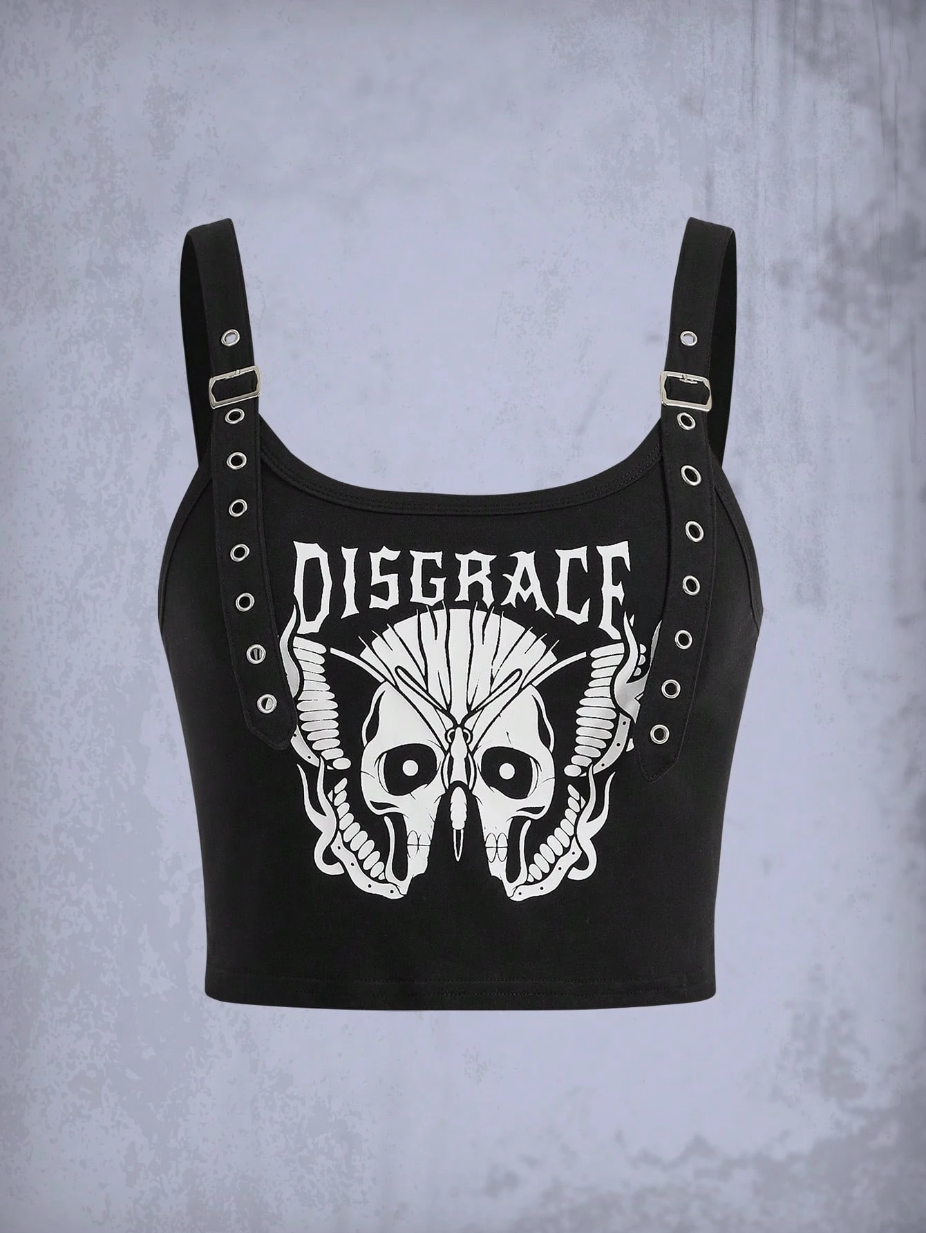 Afdhal Studio Letter Skull Graphic Grommet Eyelet Cami Top