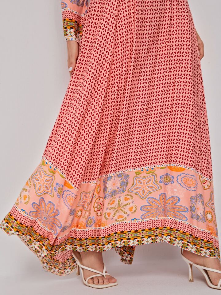 All Over Print Tie Neck Asymmetrical Hem Dress