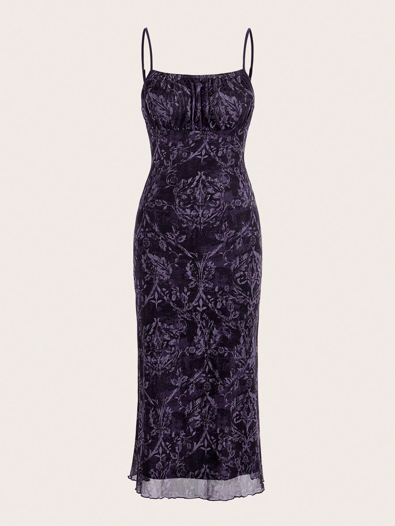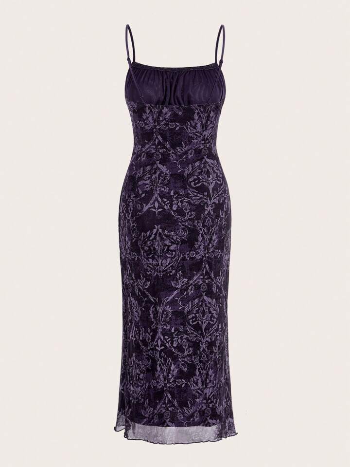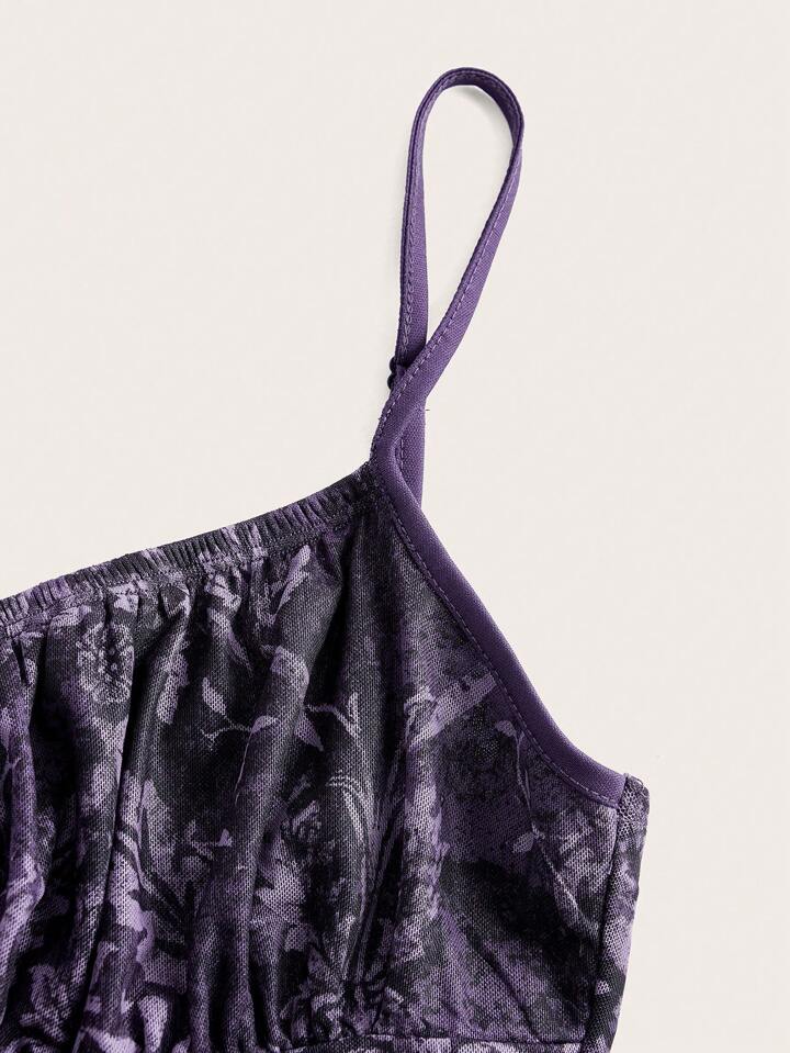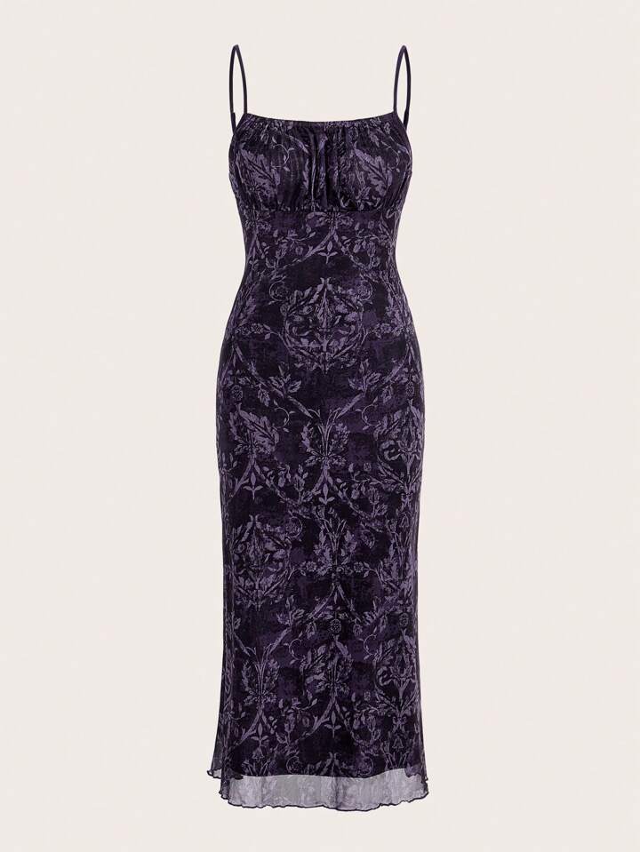 Allover Plants Print Ruched Bust Cami Dress Without Belt