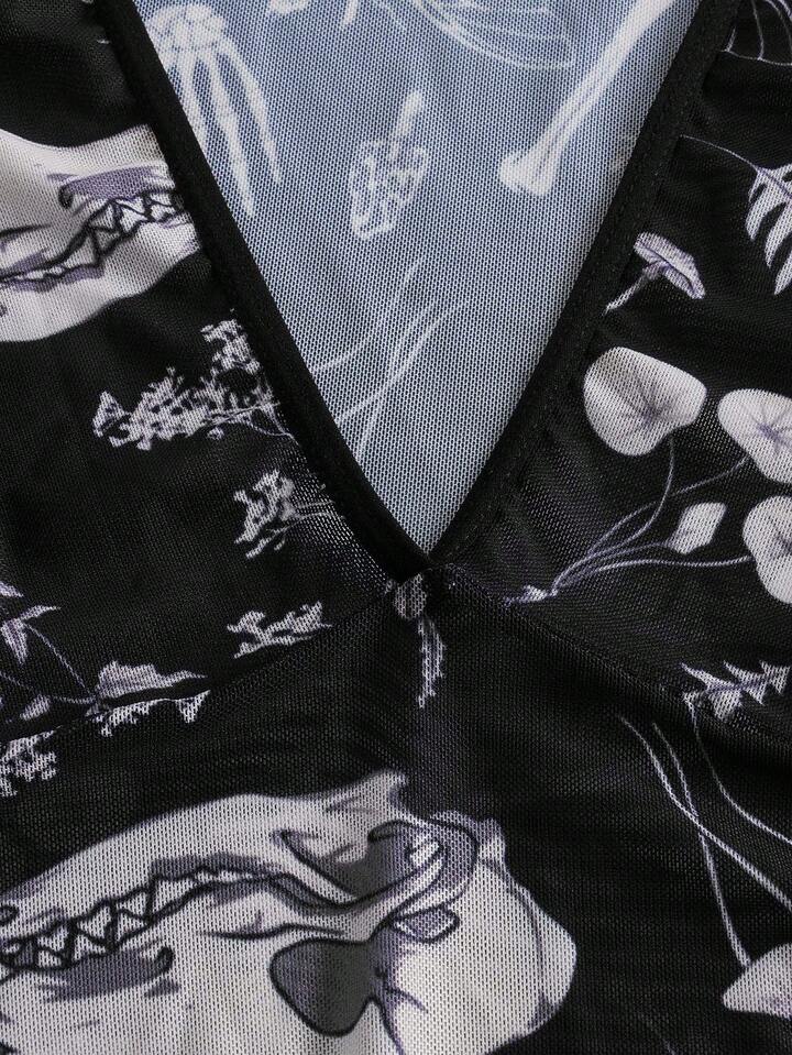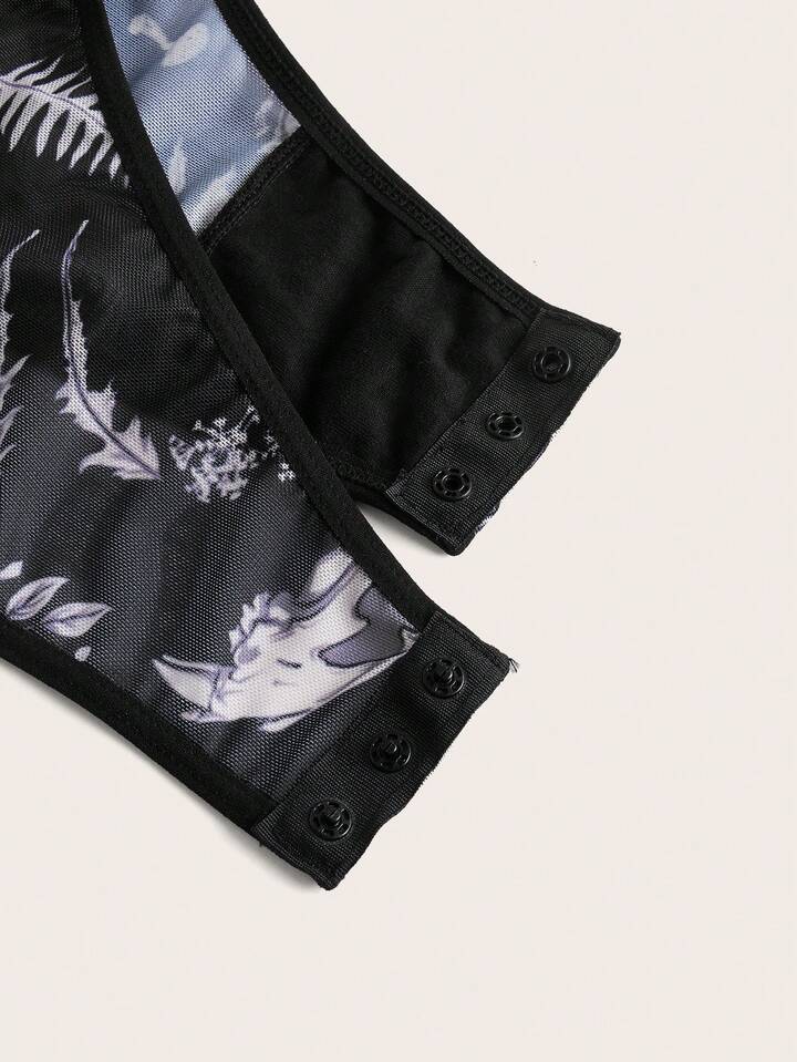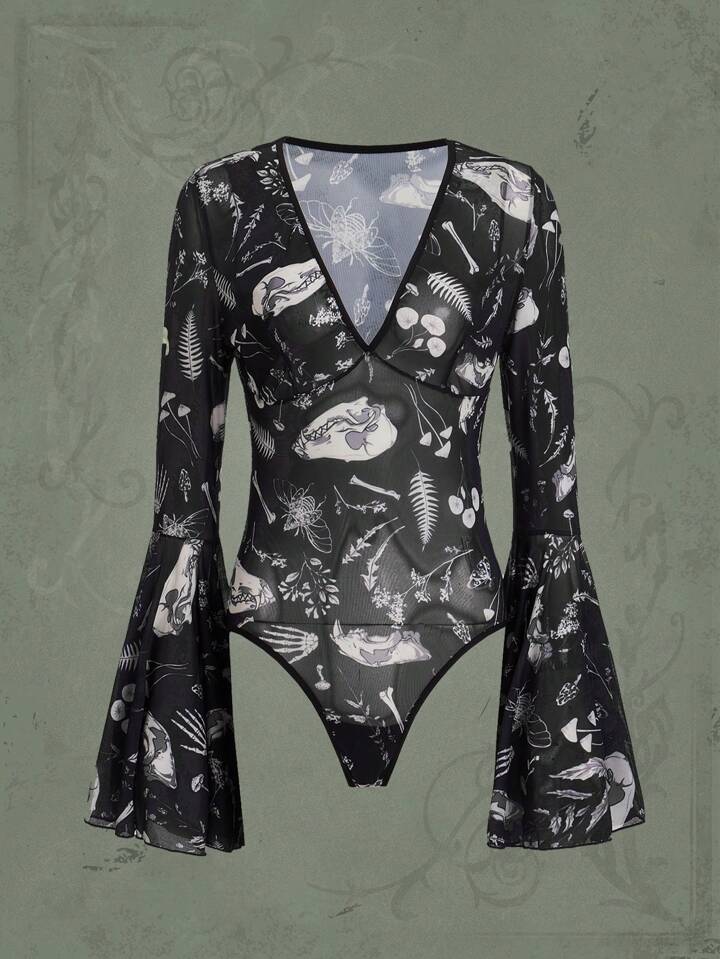 Goth Allover Print Mesh Teddy Bodysuit