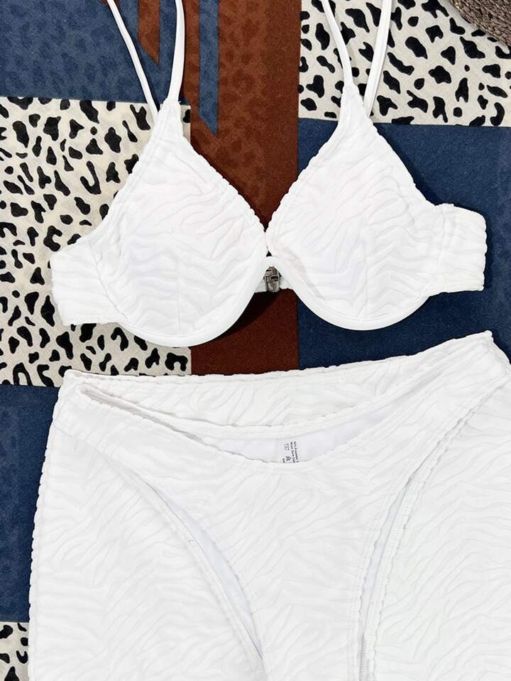 Allover Print Underwire Summer Beach Bikini Set With Beach Skirt