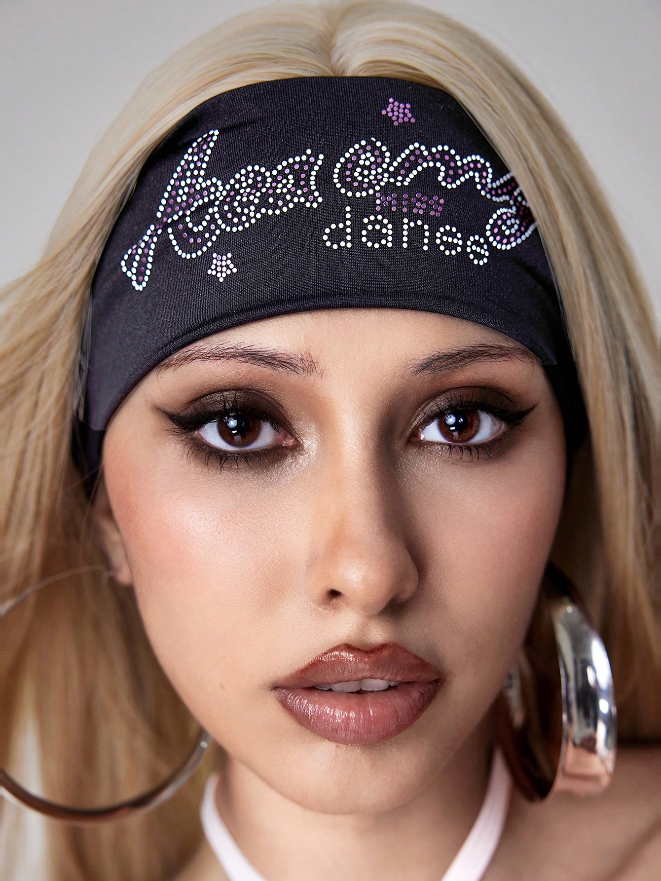 Anime 1pc Punk Style Sequin Letter Knit Headband - Pink, Minimalist Black Solid Wide Headband, Versatile Stylish Hair Accessories For Daily Wear Turban Headband Sweatband