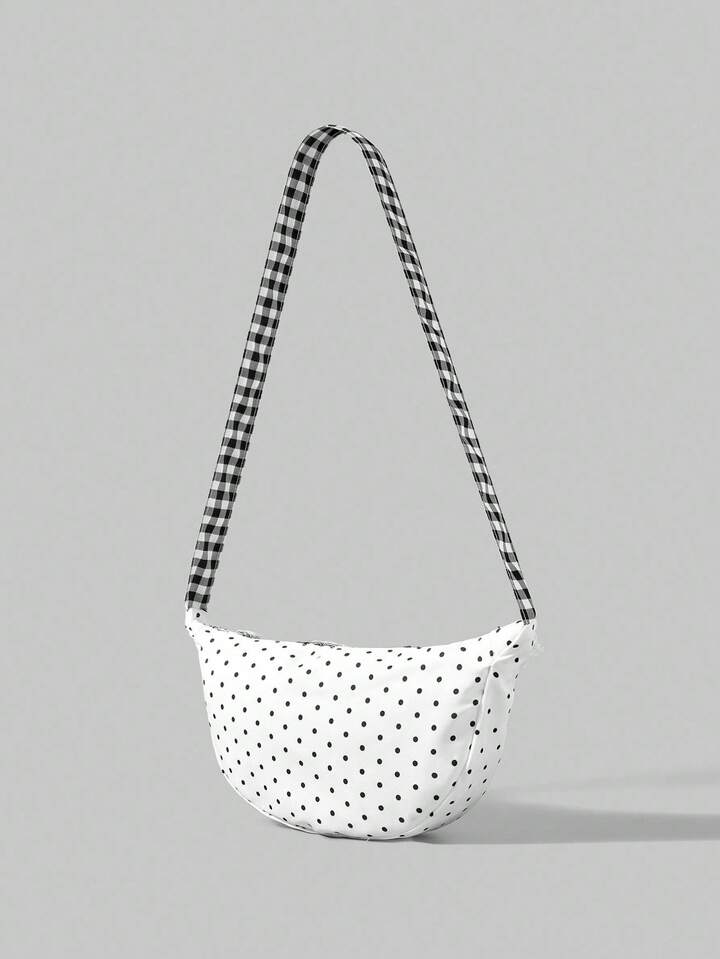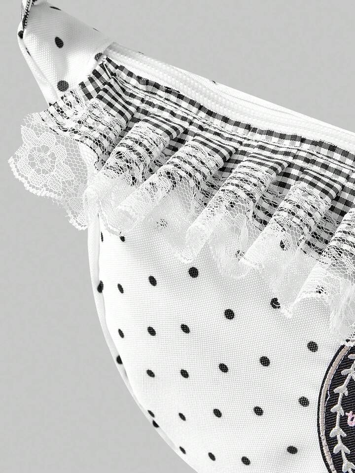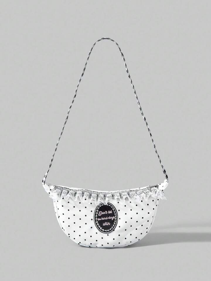 Anime 1pc White Sweet Cute Plaid Lace Patchwork Pop Art Sexy Classic Polka Dot Letter Crescent Moon Shoulder Bag, Suitable For Shopping And More