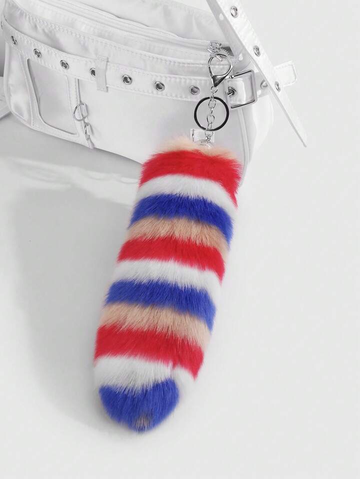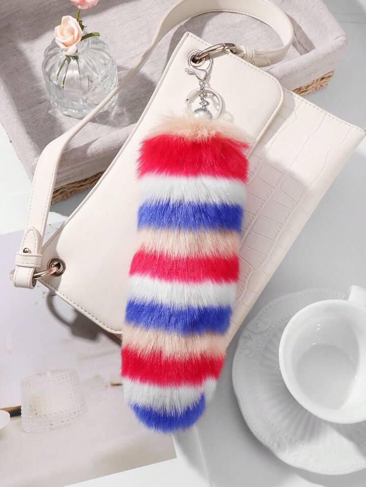 Anime 1pc Y2K Retro Fashionable Delicate Multi-Color Gradient Faux Fur Animal Tail DIY Keychain Bag Charm, Suitable For Women & Girls Daily Wear, Holiday Gift