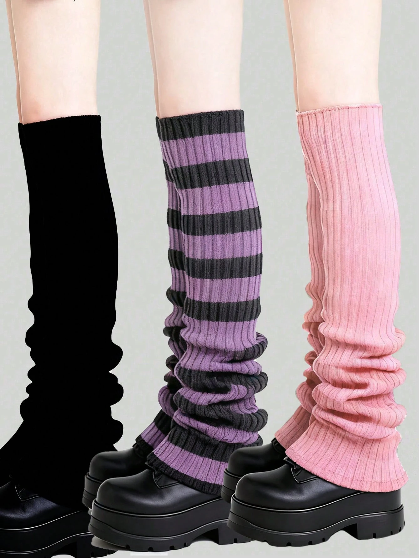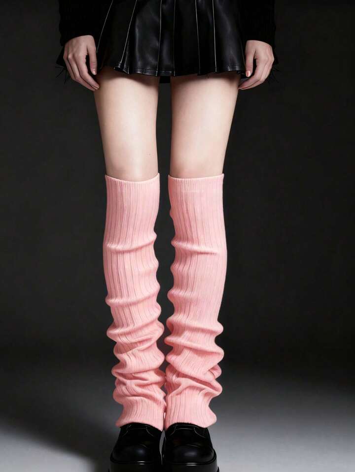Anime 2 Pairs Y2K Style Random Color Knitted Leg Warmers, Versatile Over-The-Knee Leg Warmers, Preppy Daily Wear