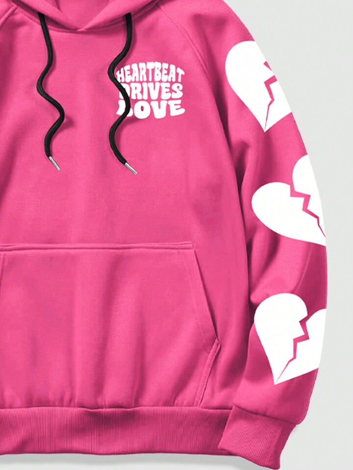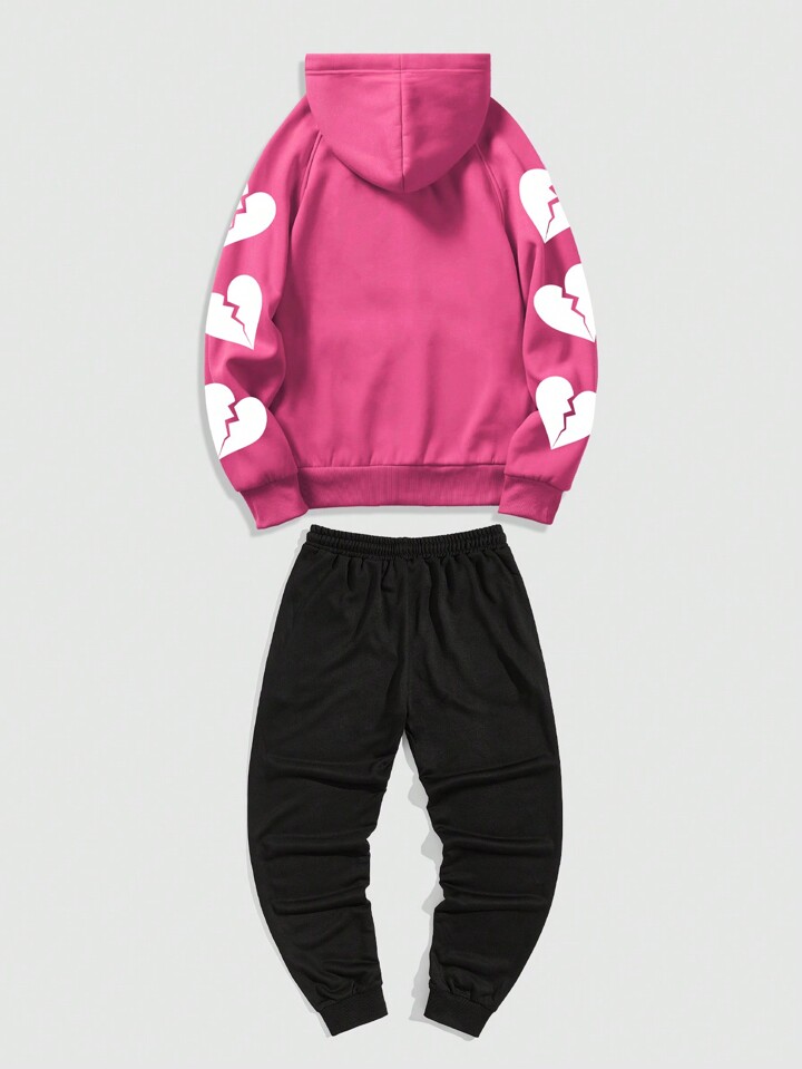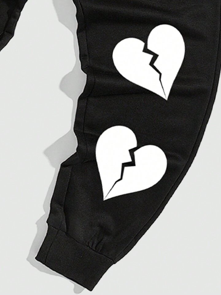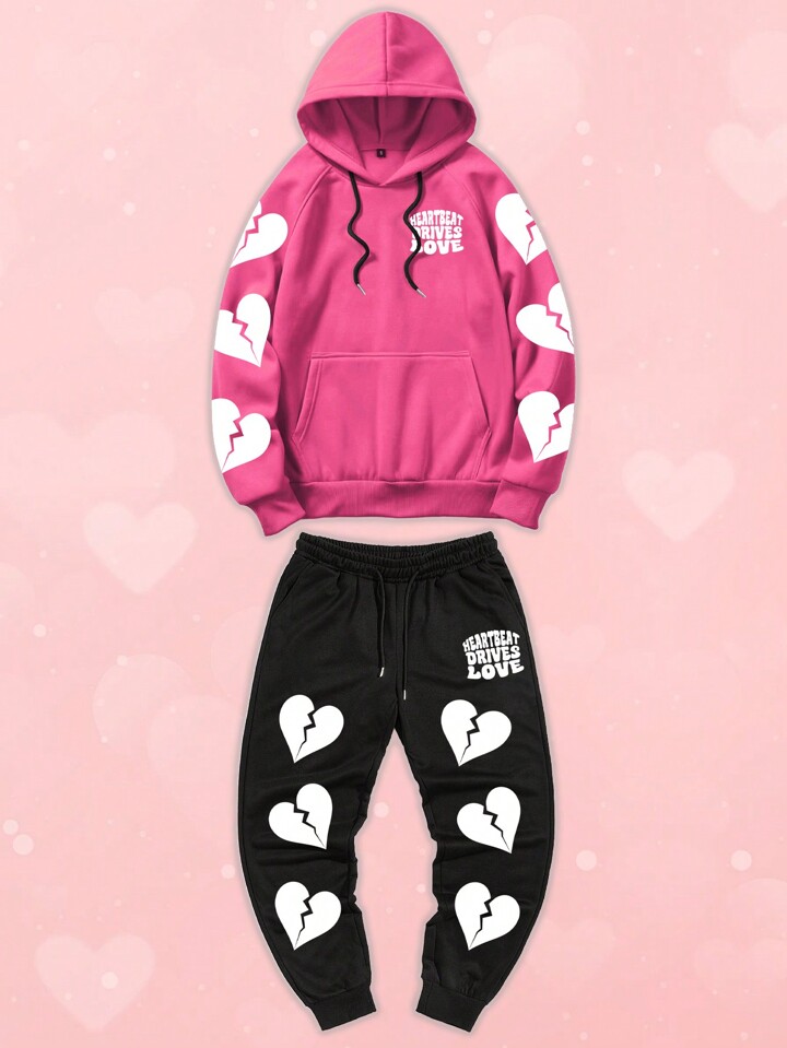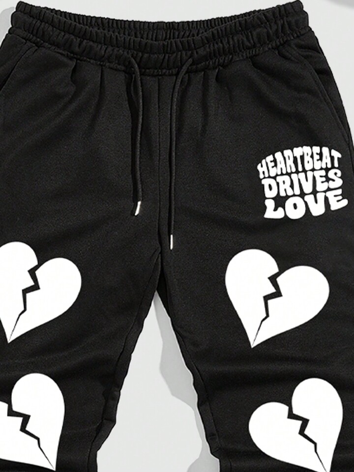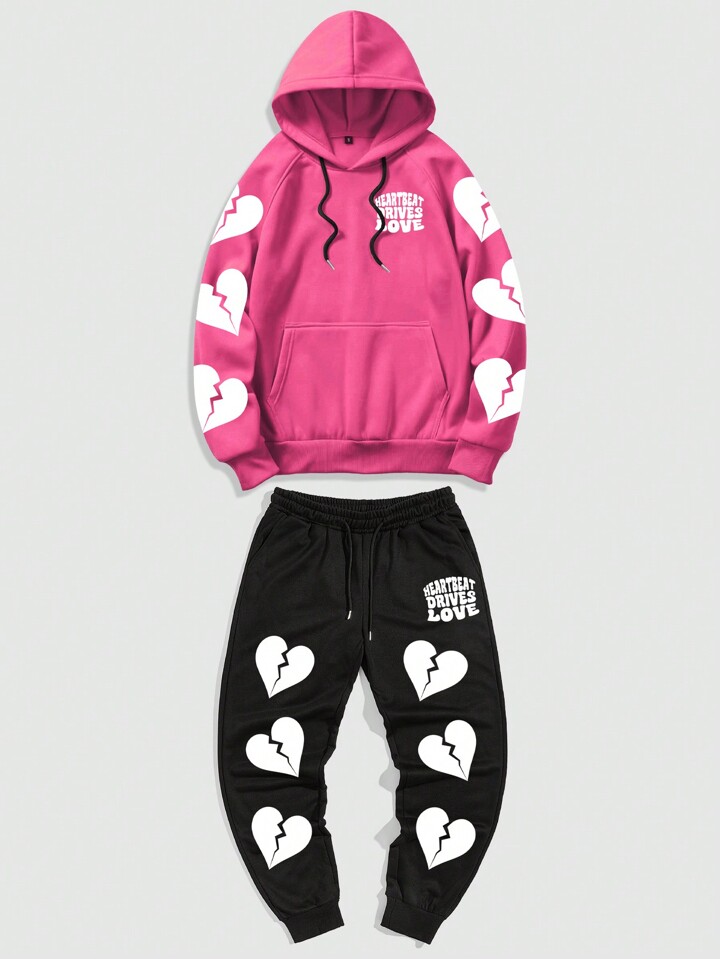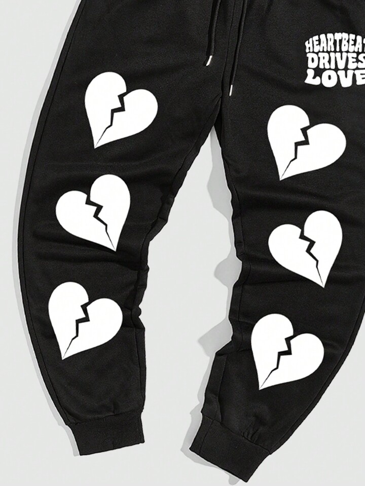 Anime 2pcs/Set Men's Heart Printed Sweatshirt And Pants Set, Love/Lover/Heart