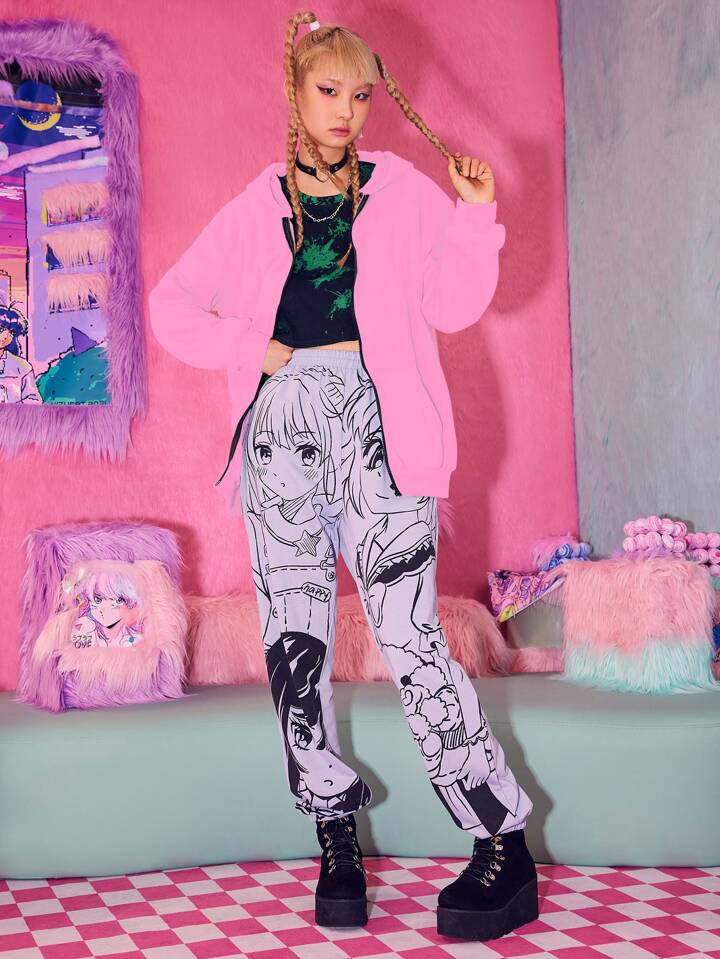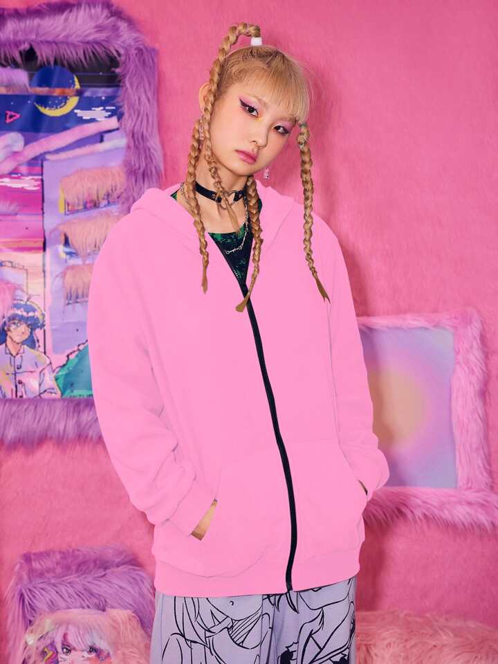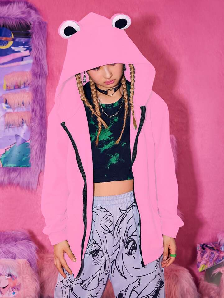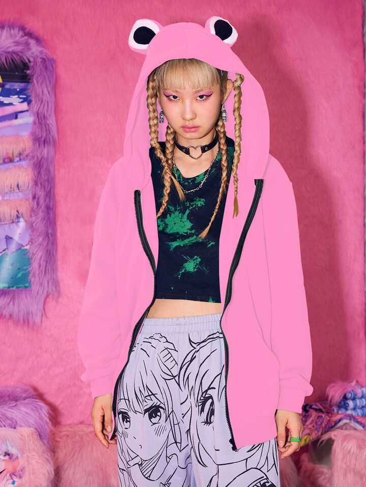Anime 3D Ear Patched Zip Up Fleece Hoodie