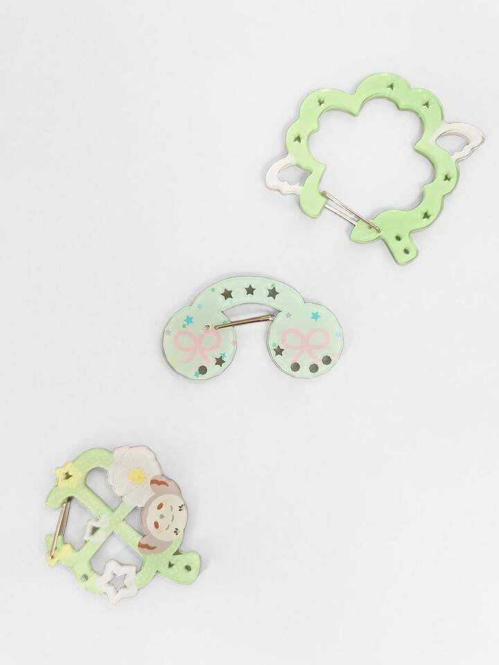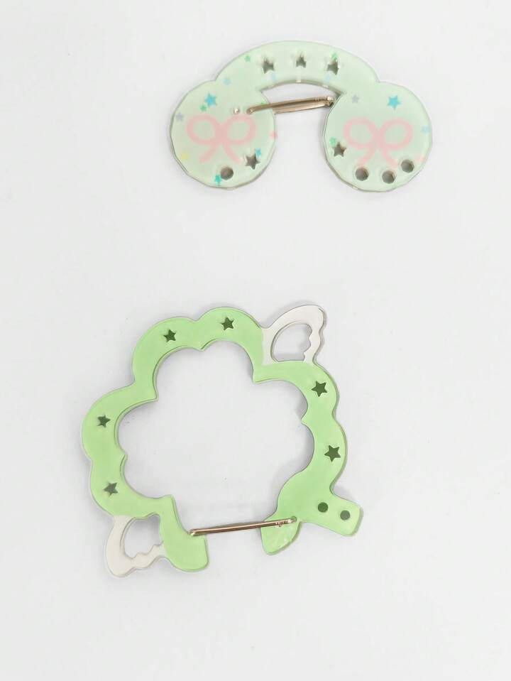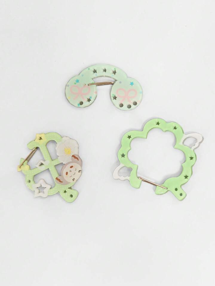 Anime 3pcs Random Cute Clover Earmuff Keychain, Y2K Lolita Green Acrylic Butterfly Flower Star Charm Bag Pendant, Versatile High-End Accessories