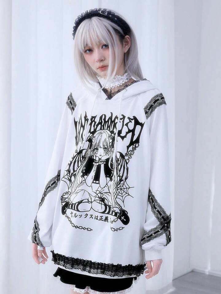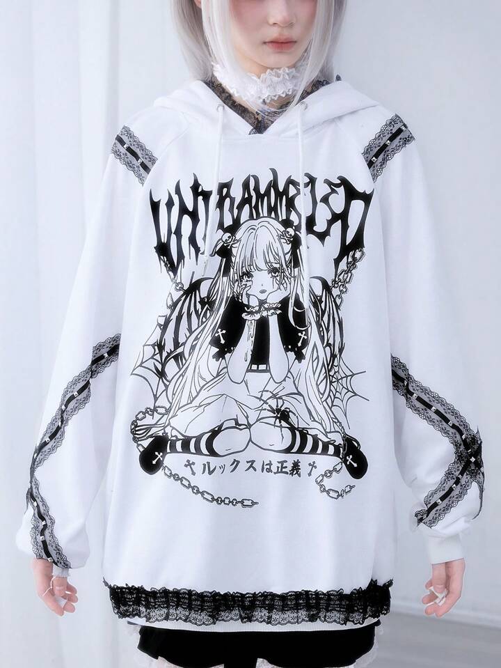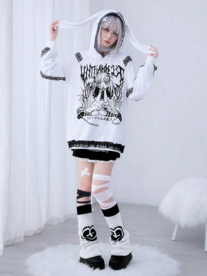 Cute Anime Girl Lace Patchwork Rabbit Ear Hoodie