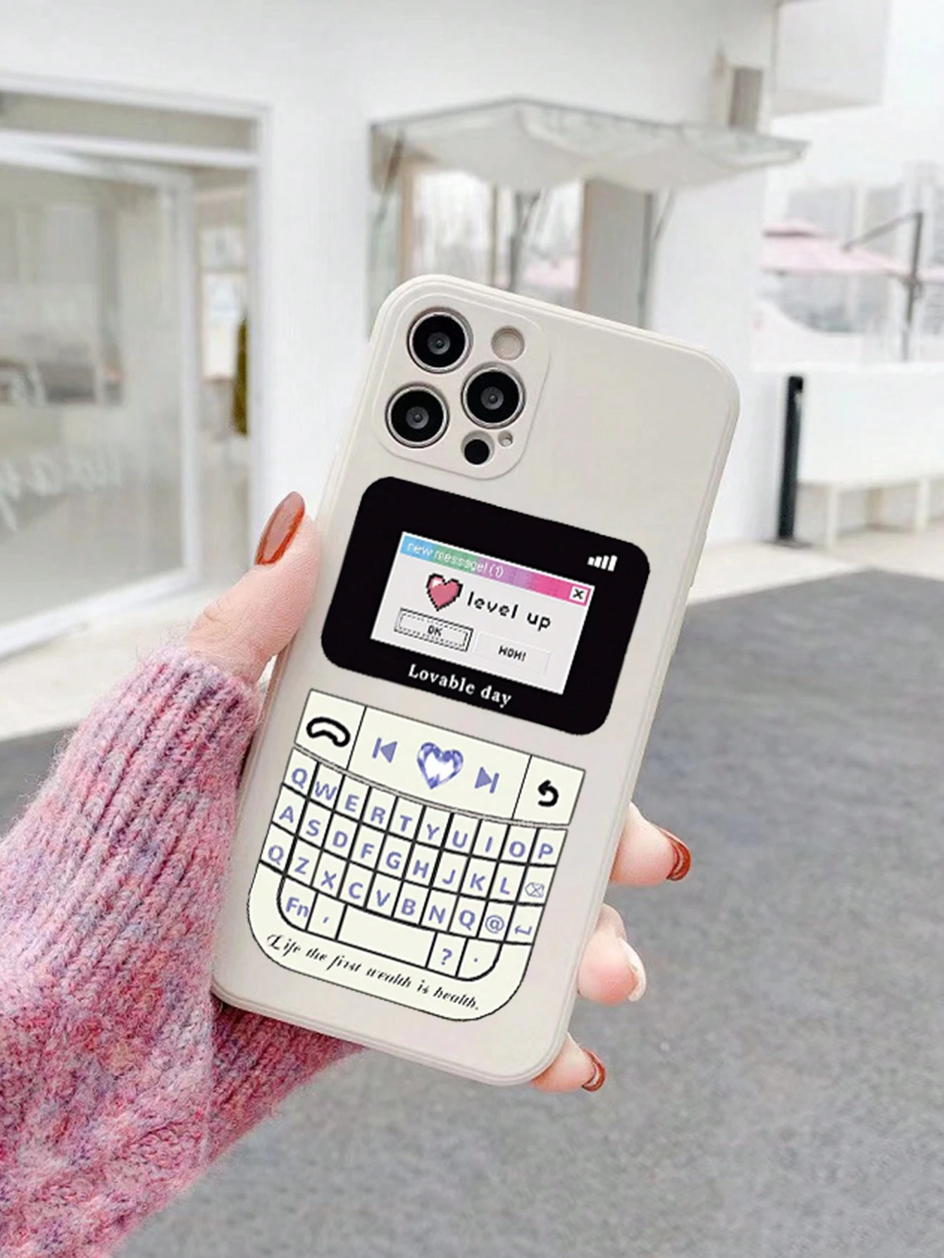 Anime Diamond Heart Telephone Pattern & Painted Beige Mobile Phone Case, Compatible With Iphone 12/13/14 Series And Other Models