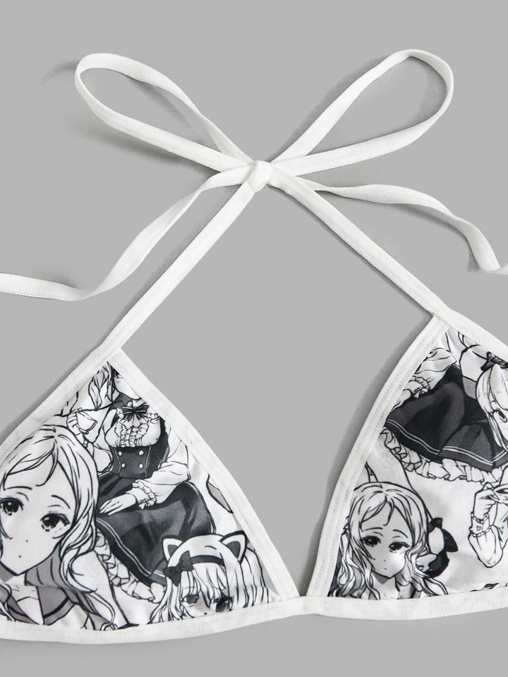 Anime Figure Graphic Halter Tie Side Lingerie Set
