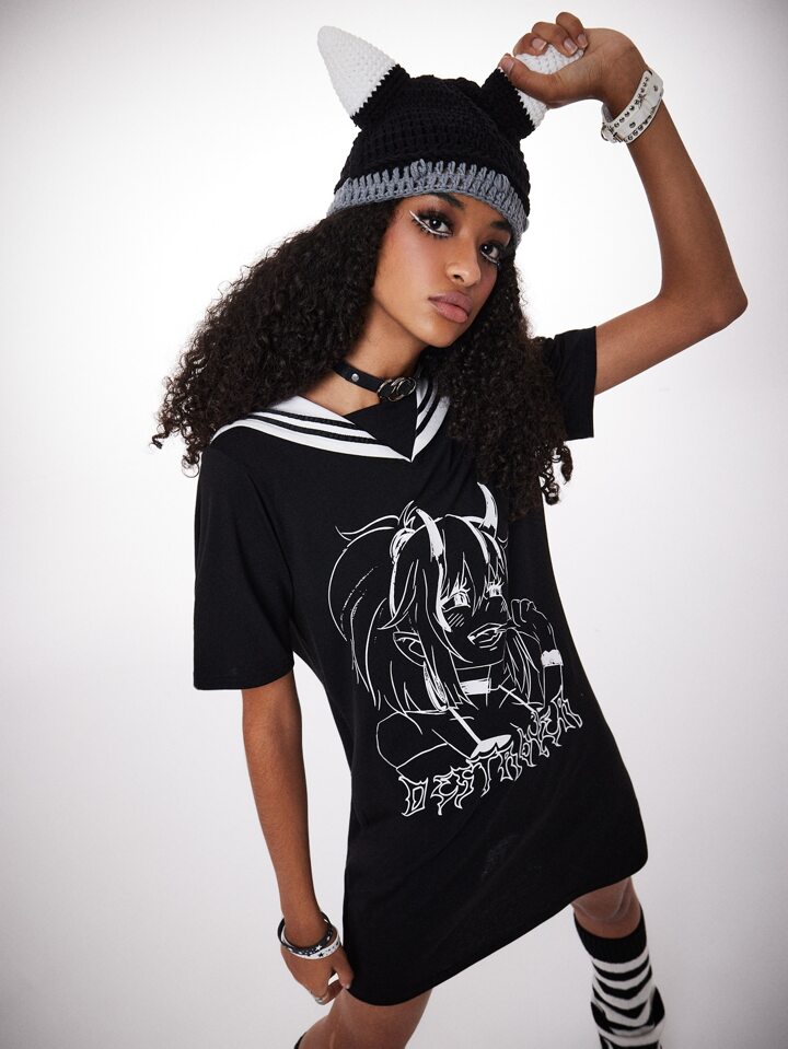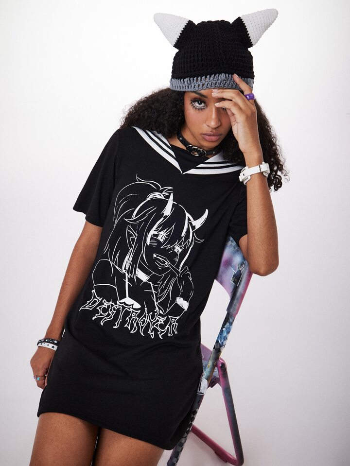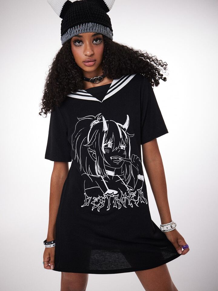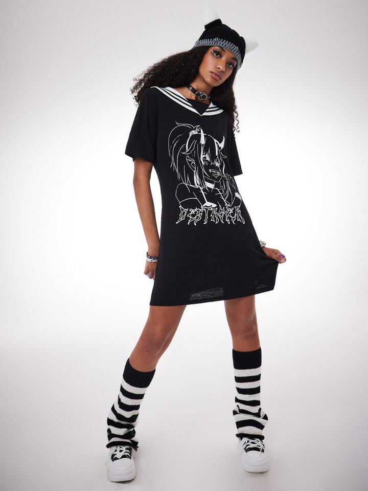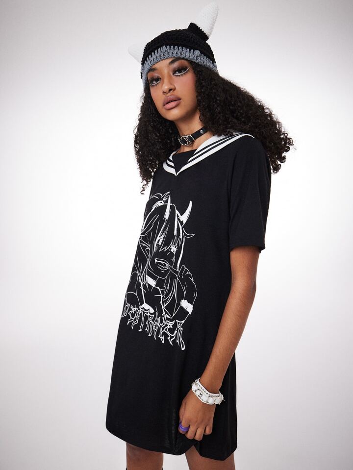 Anime Figure Graphic Sailor Collar Tee Dress