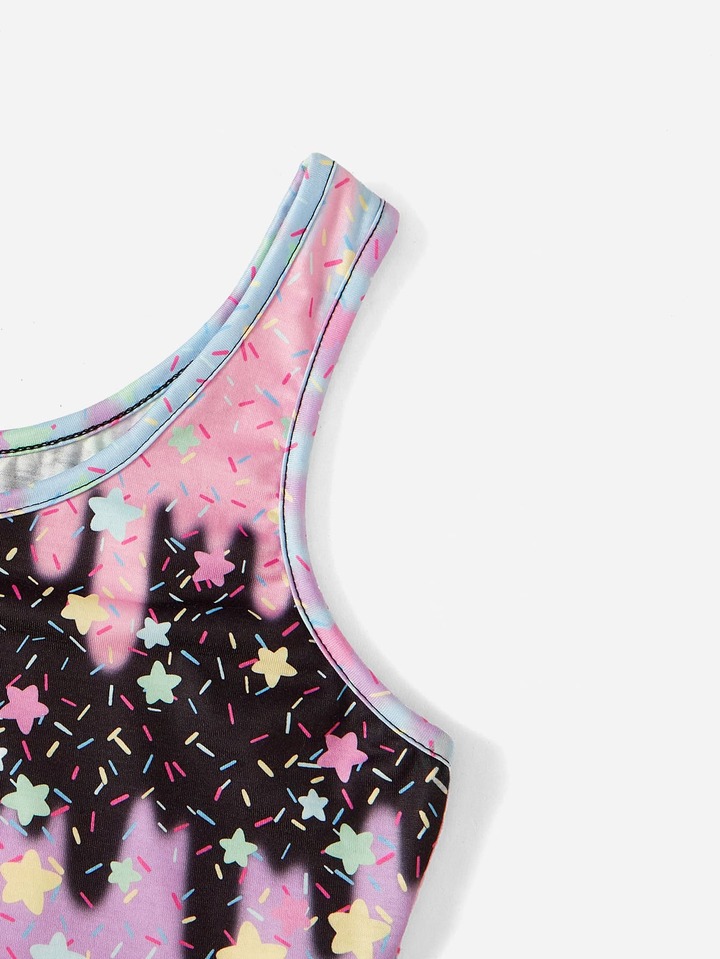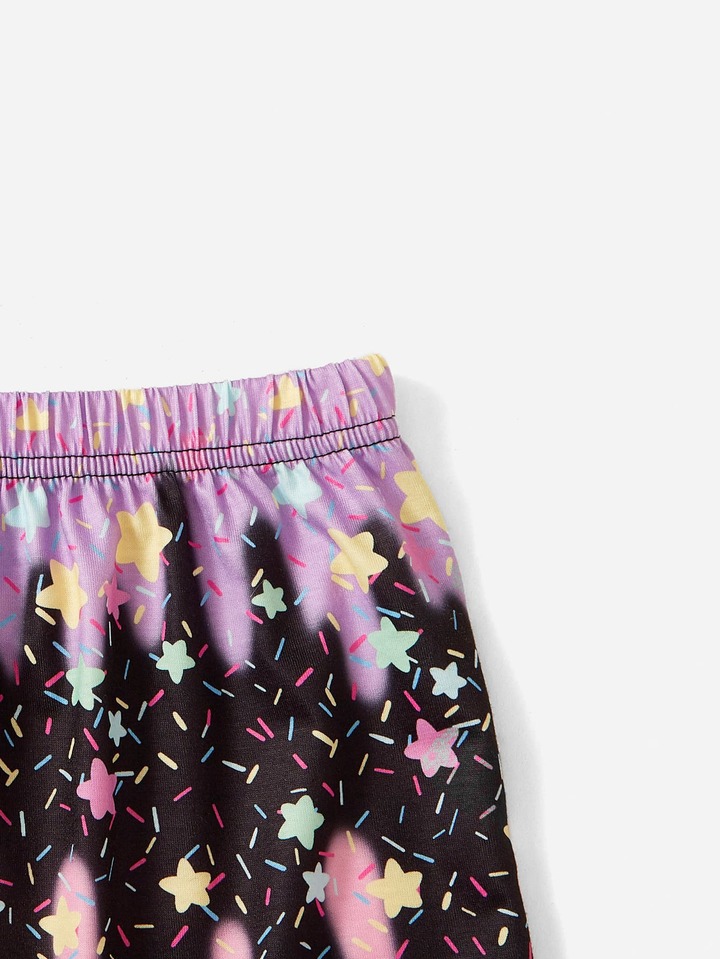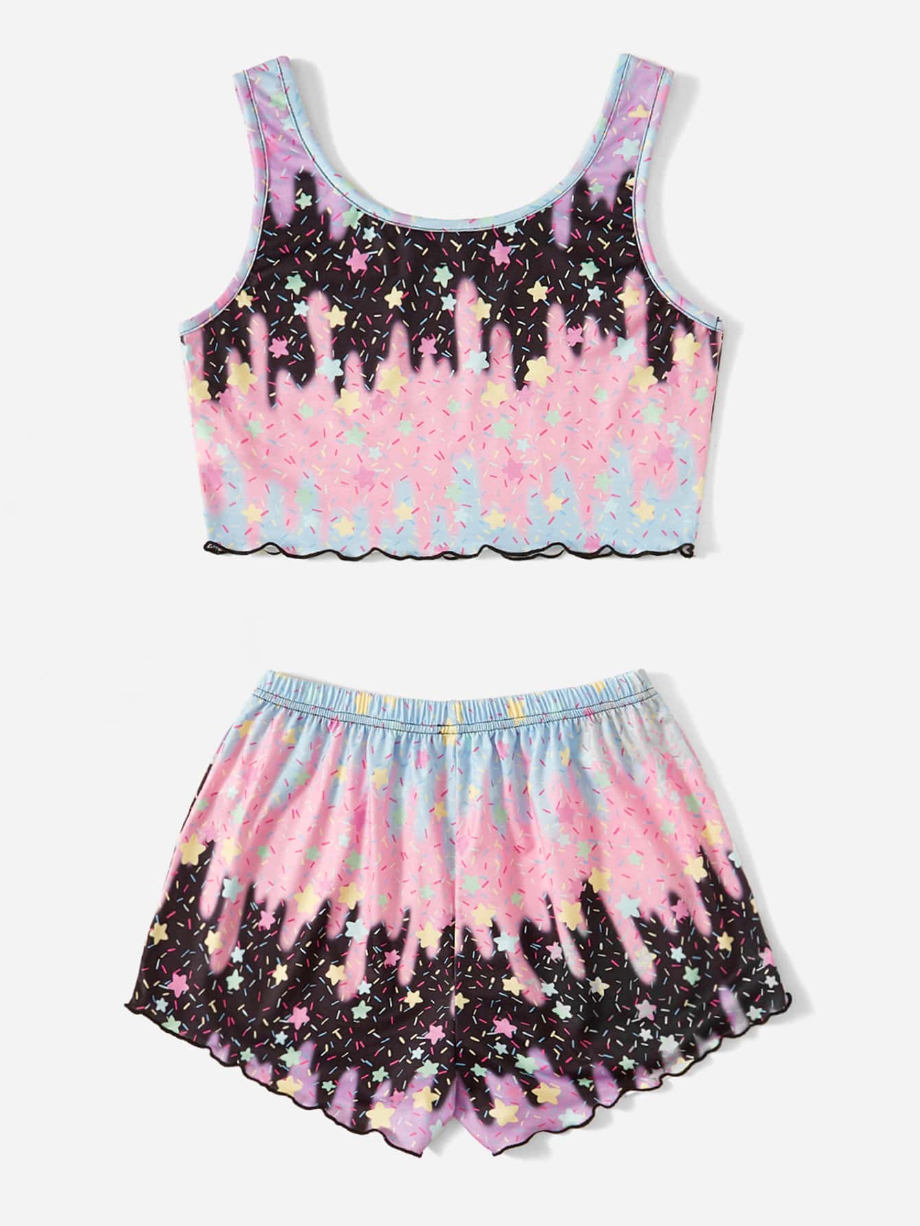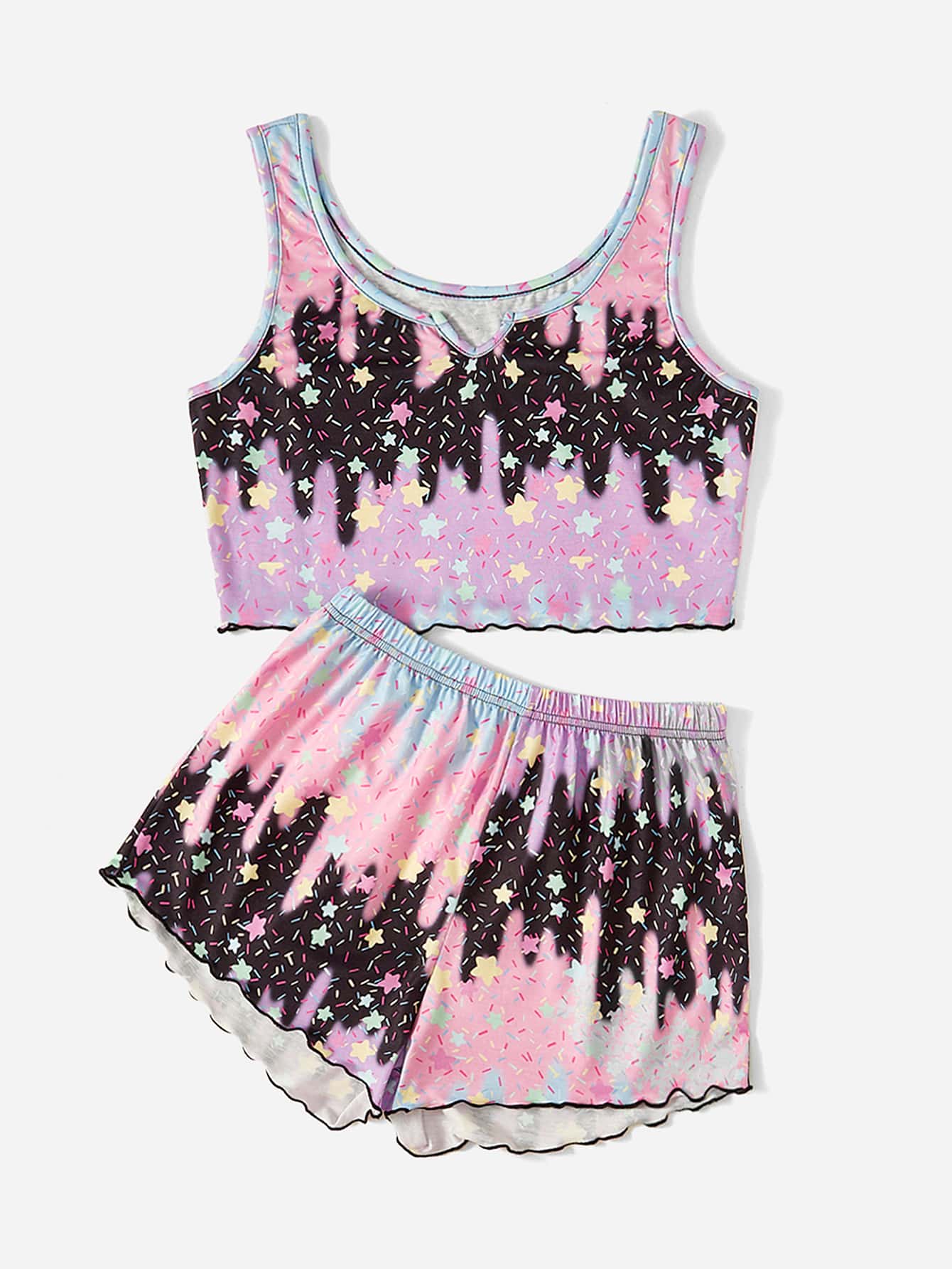 Anime Galaxy Colorblock Lettuce Trim Notched Neck Pajama Set