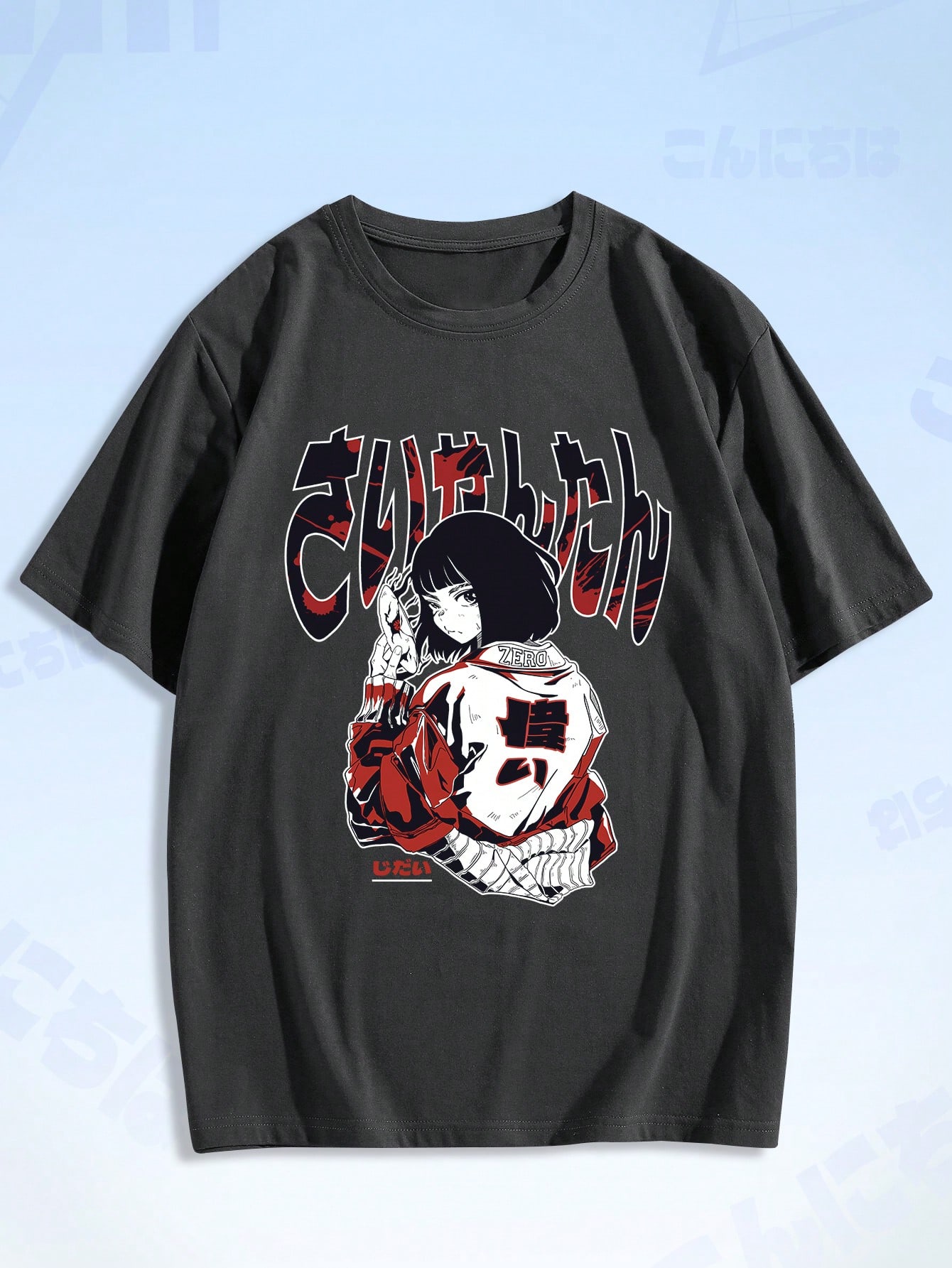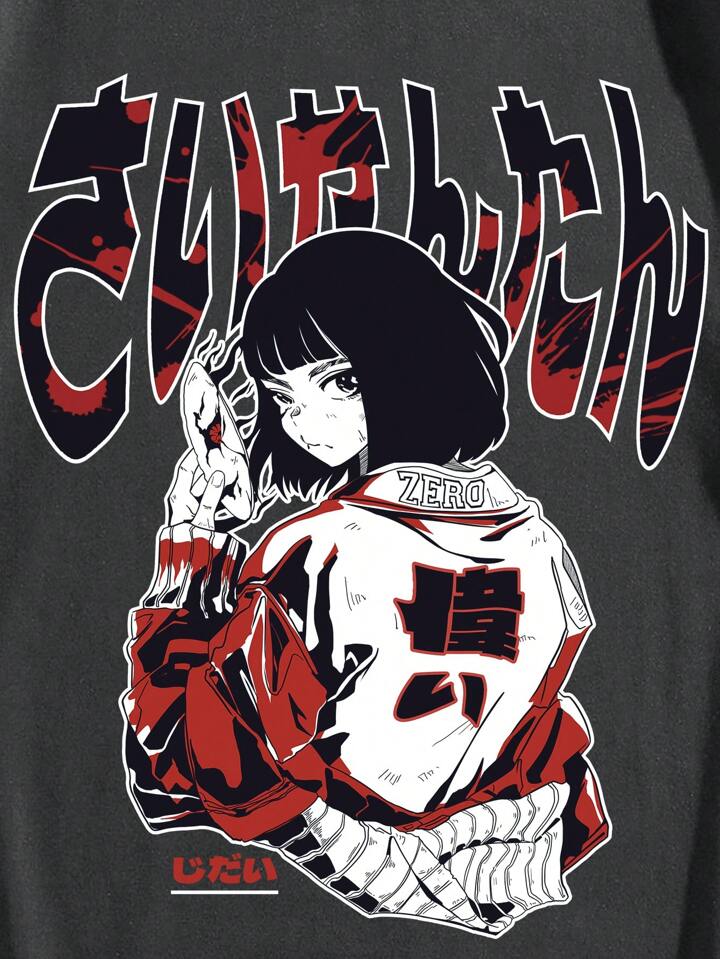 Anime Guys Cotton Letter Figure Graphic Tee