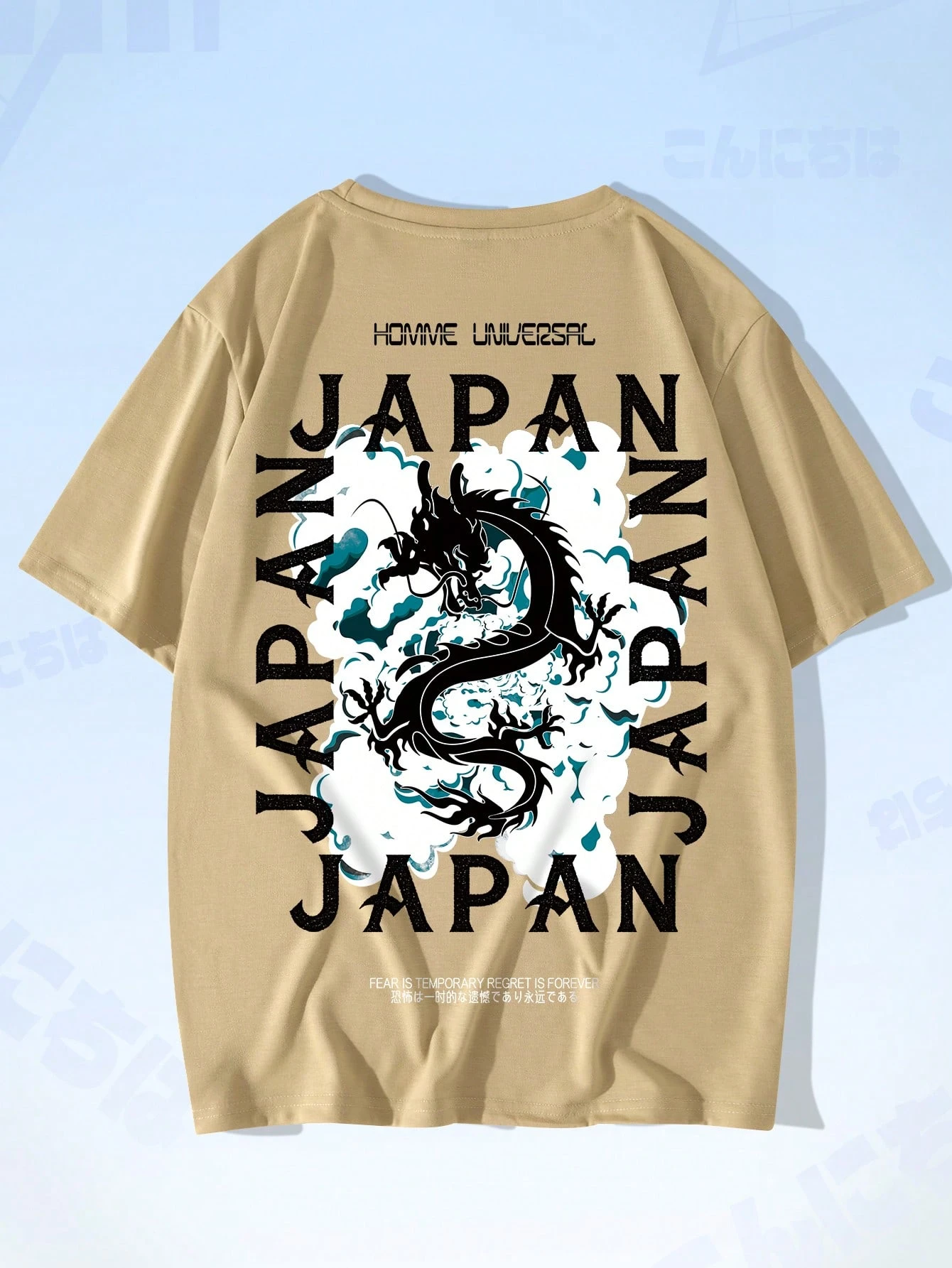 Anime Guys Dragon & Slogan Graphic Tee