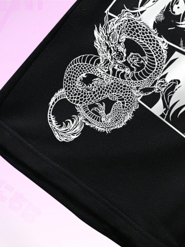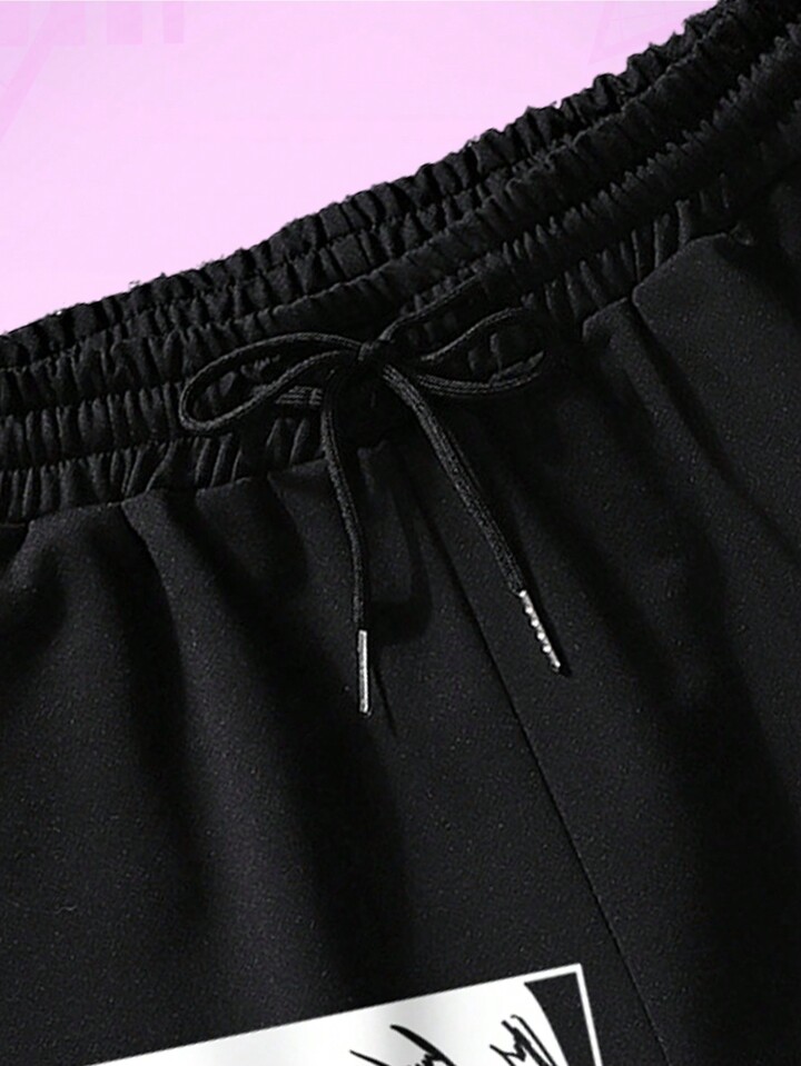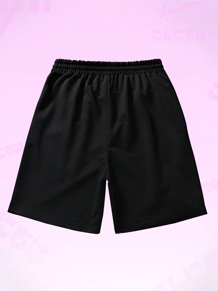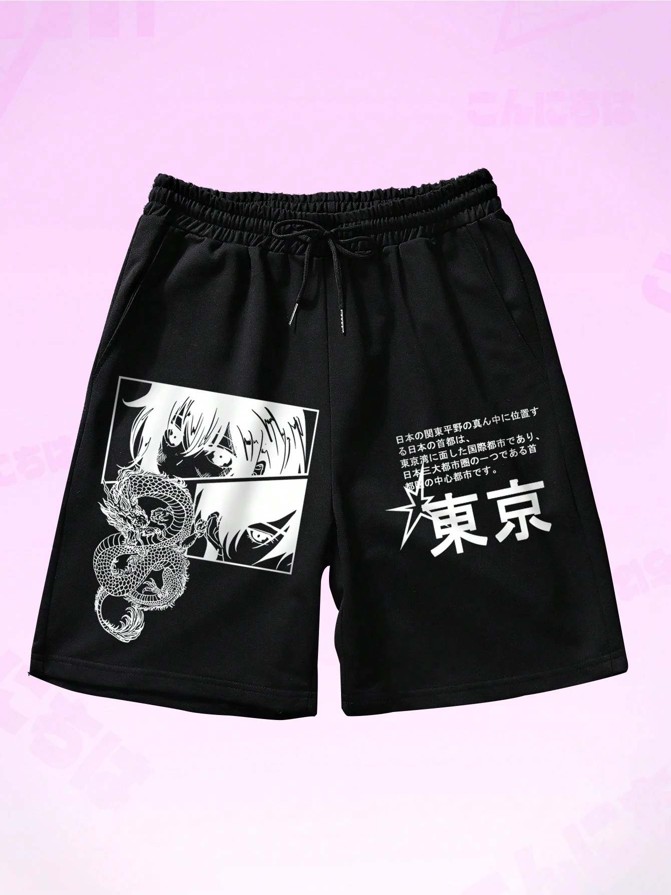 Anime Guys Japanese Letter & Figure Graphic Drawstring Waist Shorts