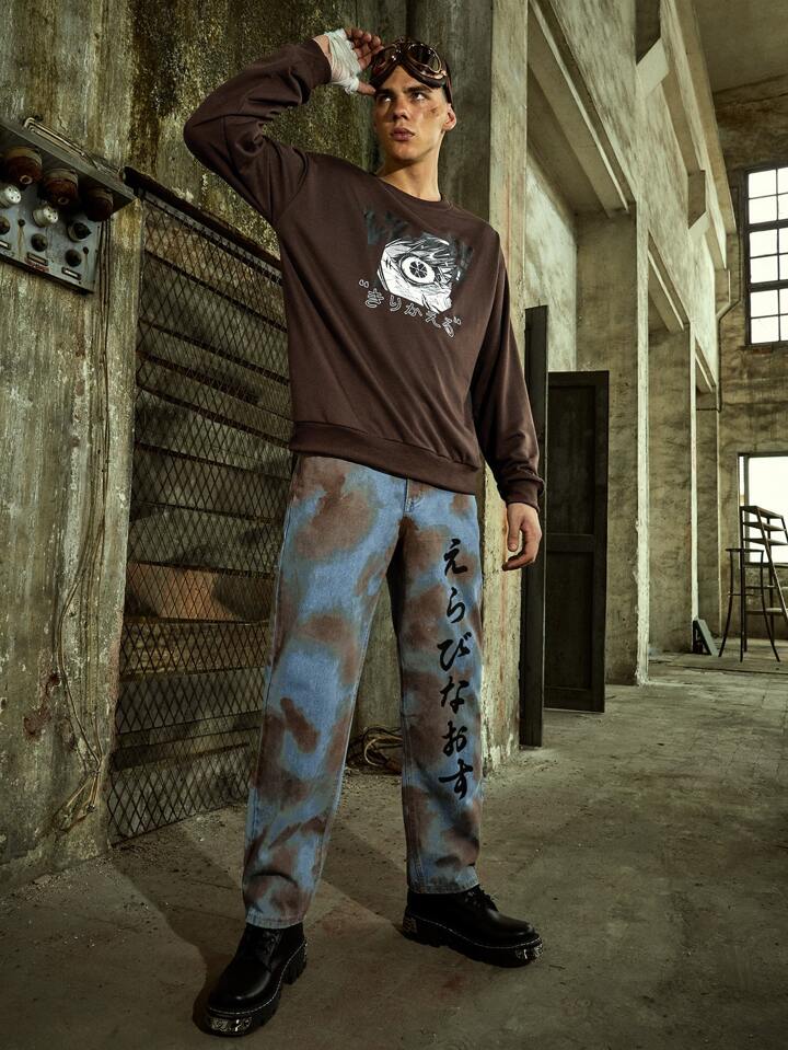 Anime Guys Japanese Writing Tie Dye Jeans