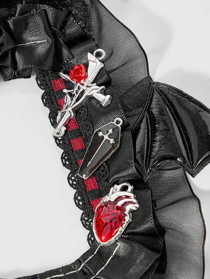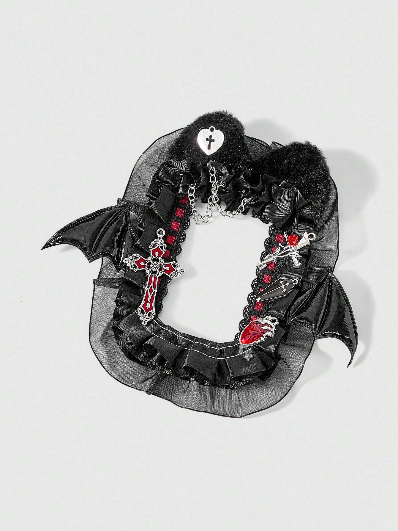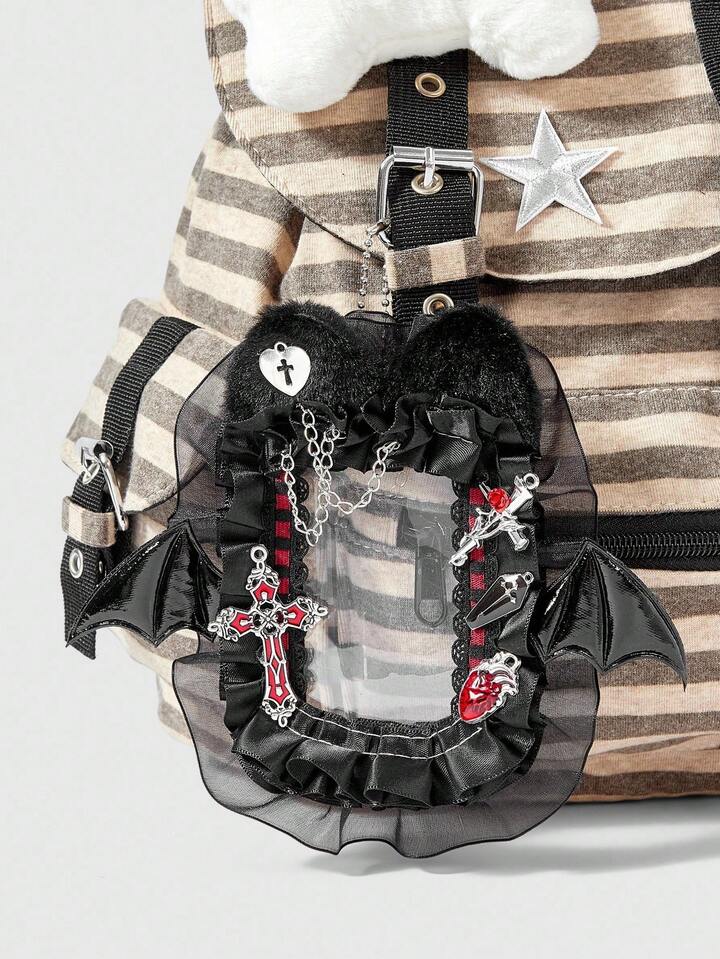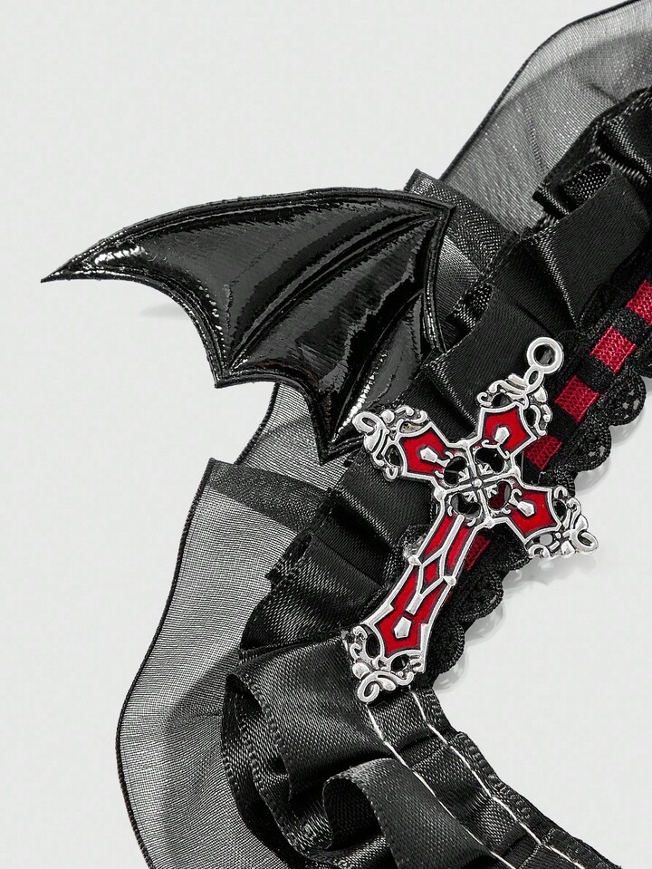Anime Halloween Black Lace Bat Wing Cross Charm Casual Chic Multifunctional Card Holder, Suitable For ID Card, Photo, Etc.