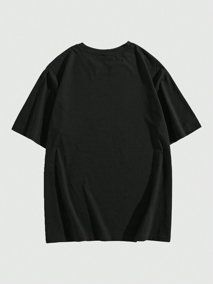 Anime Men Cotton Figure & Letter Graphic Tee, School
