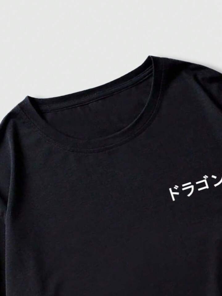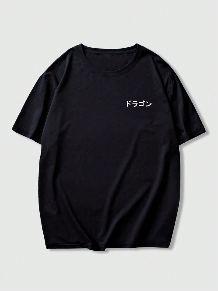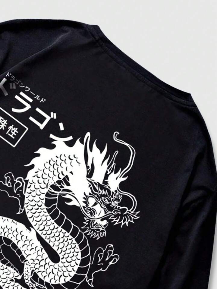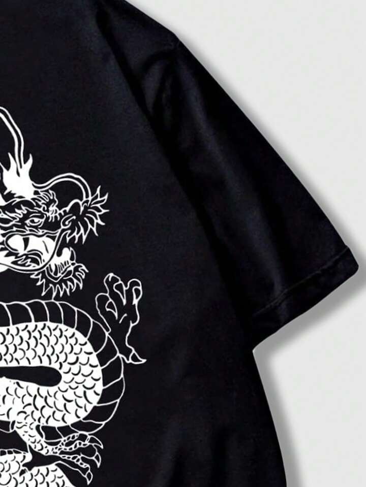 Anime Men Dragon Print Y2k T-Shirt, 2000s Style