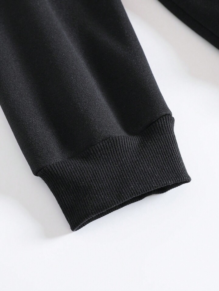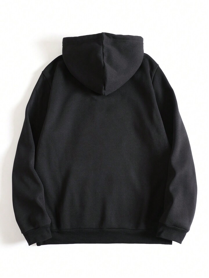 Anime Men Japanese Letter & Figure Graphic Kangaroo Pocket Drawstring Thermal Hoodie
