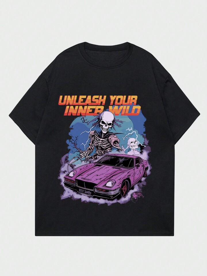 Anime Men Skull And Letter Print Short Sleeve T-Shirt