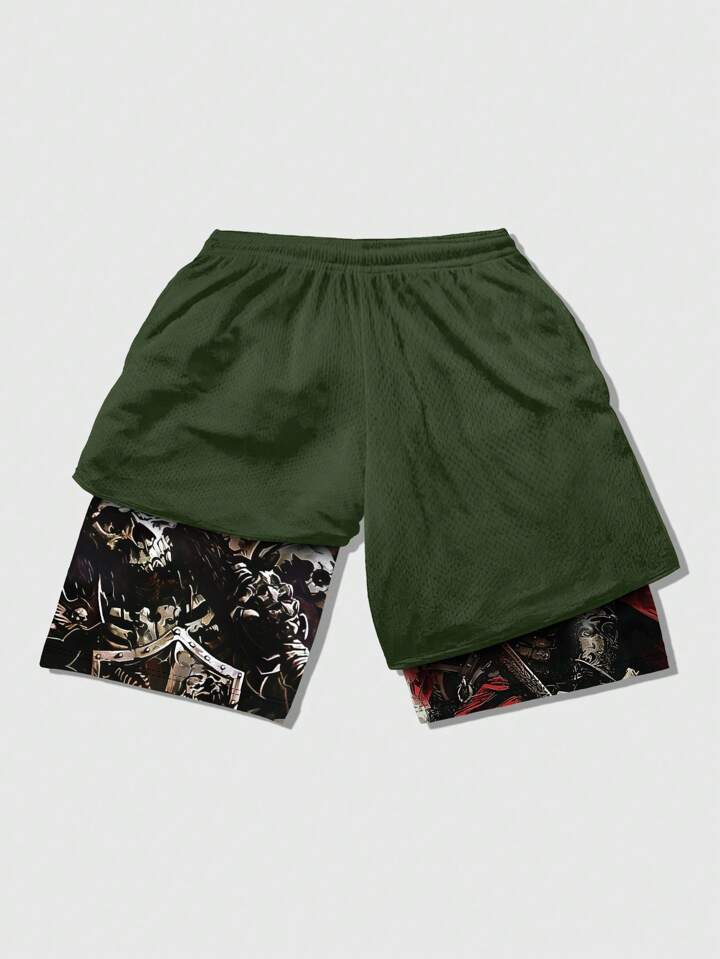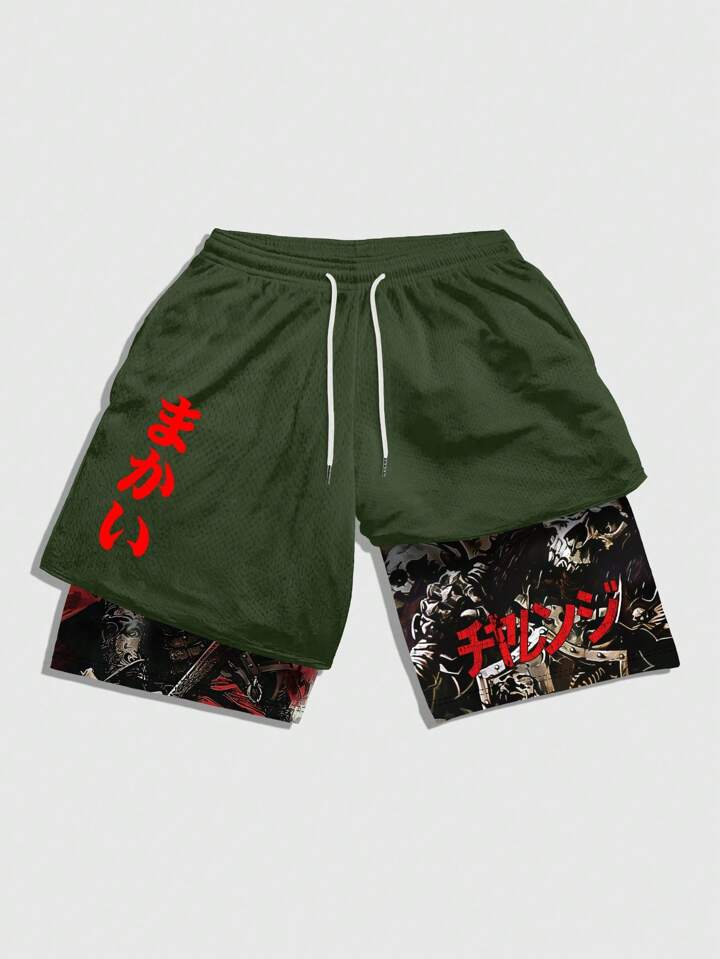 Anime Men's Front Tie Dye Print Layered Casual Shorts, Daily Wear