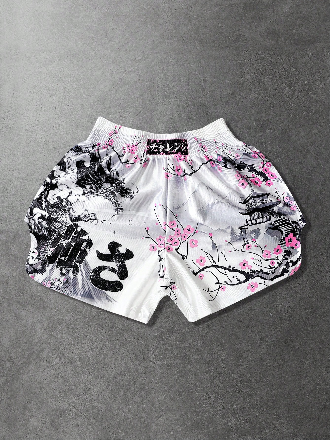 Anime Men's Japanese Style Printed Elastic Waist Loose Boxing Shorts