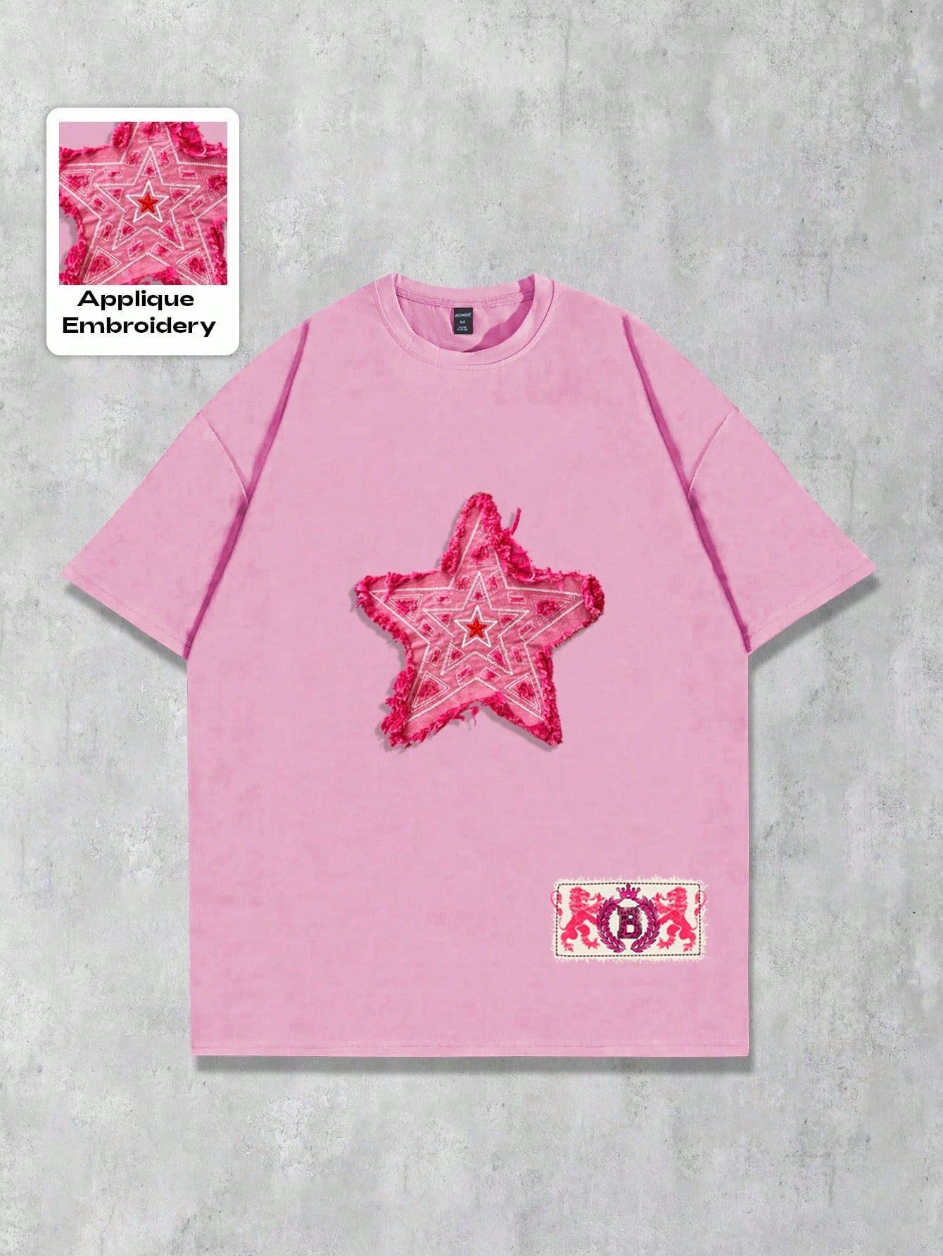 Anime Men's Star Embroidered Short Sleeve T-Shirt, Suitable For Everyday Wear, Spring/Summer