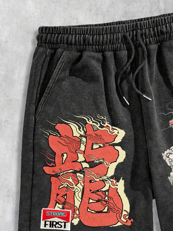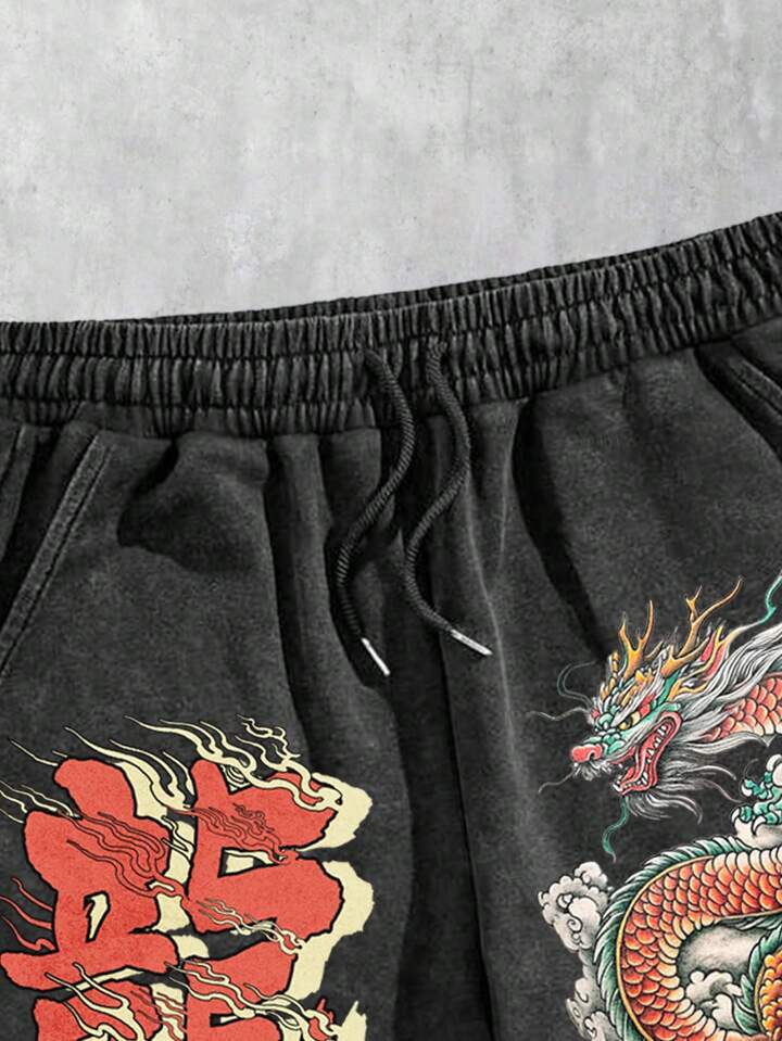 Anime New Men's Casual Cotton Fashionable Sports Shorts With Dragon Pattern