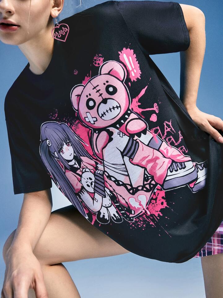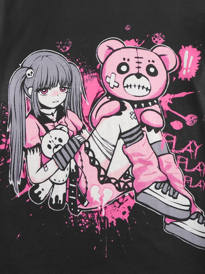 Anime Plaid Cartoon Graphic PJ Set