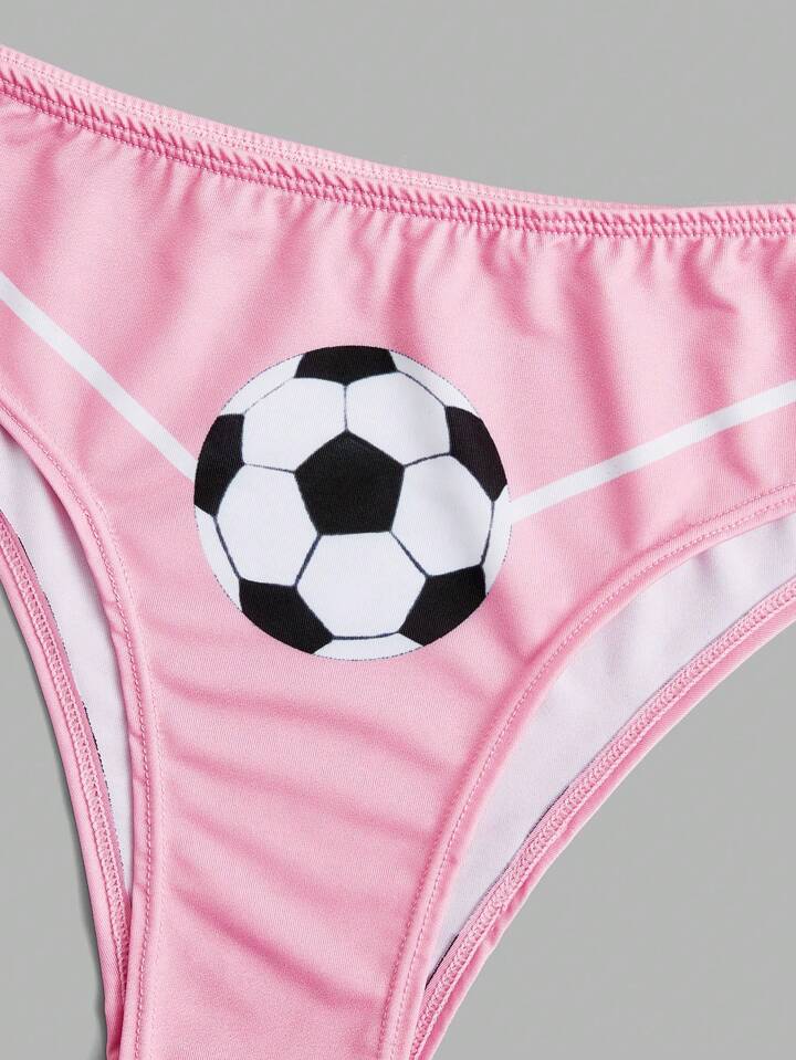 Anime Plus Letter Graphic Contrast Binding Lingerie Set