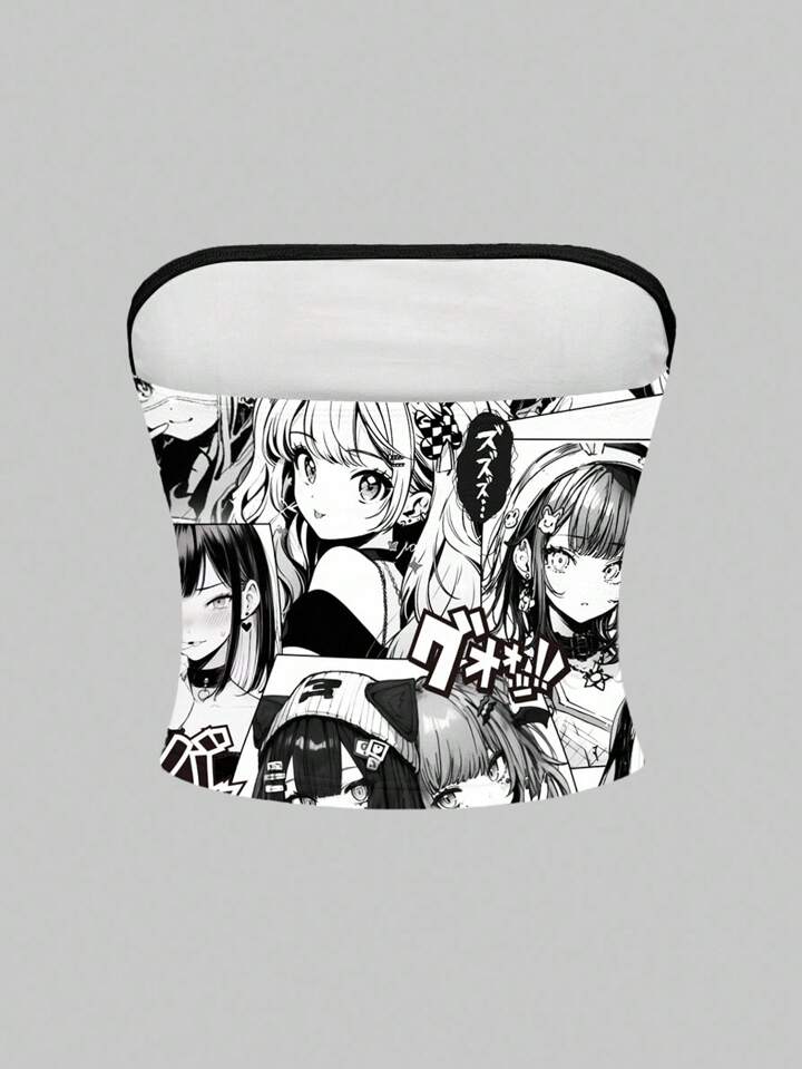 Anime Plus Size Women Sexy Strapless Cartoon Manga Girl Graphic Bandeau Top