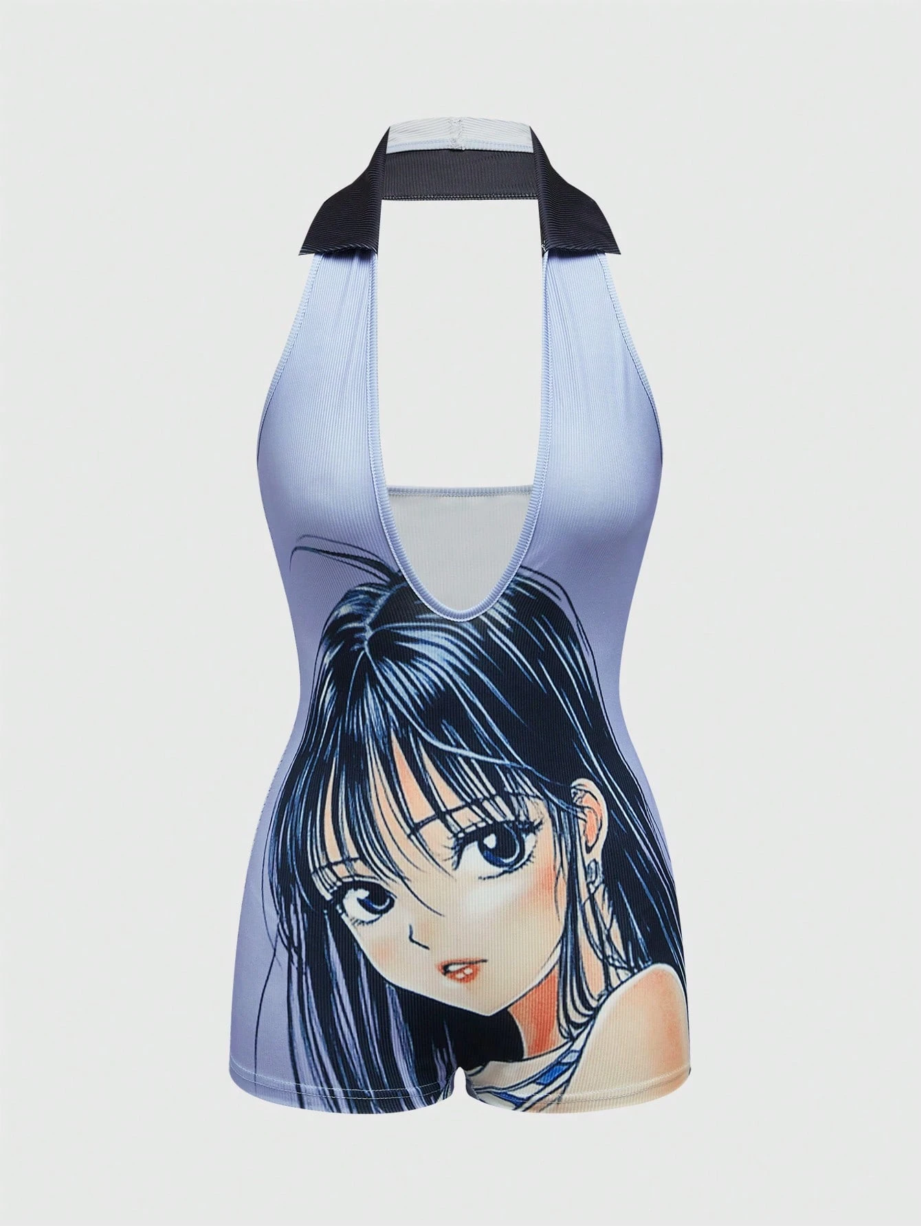 Anime Sexy Y2K Babe Cartoon Print Women Jumpsuit