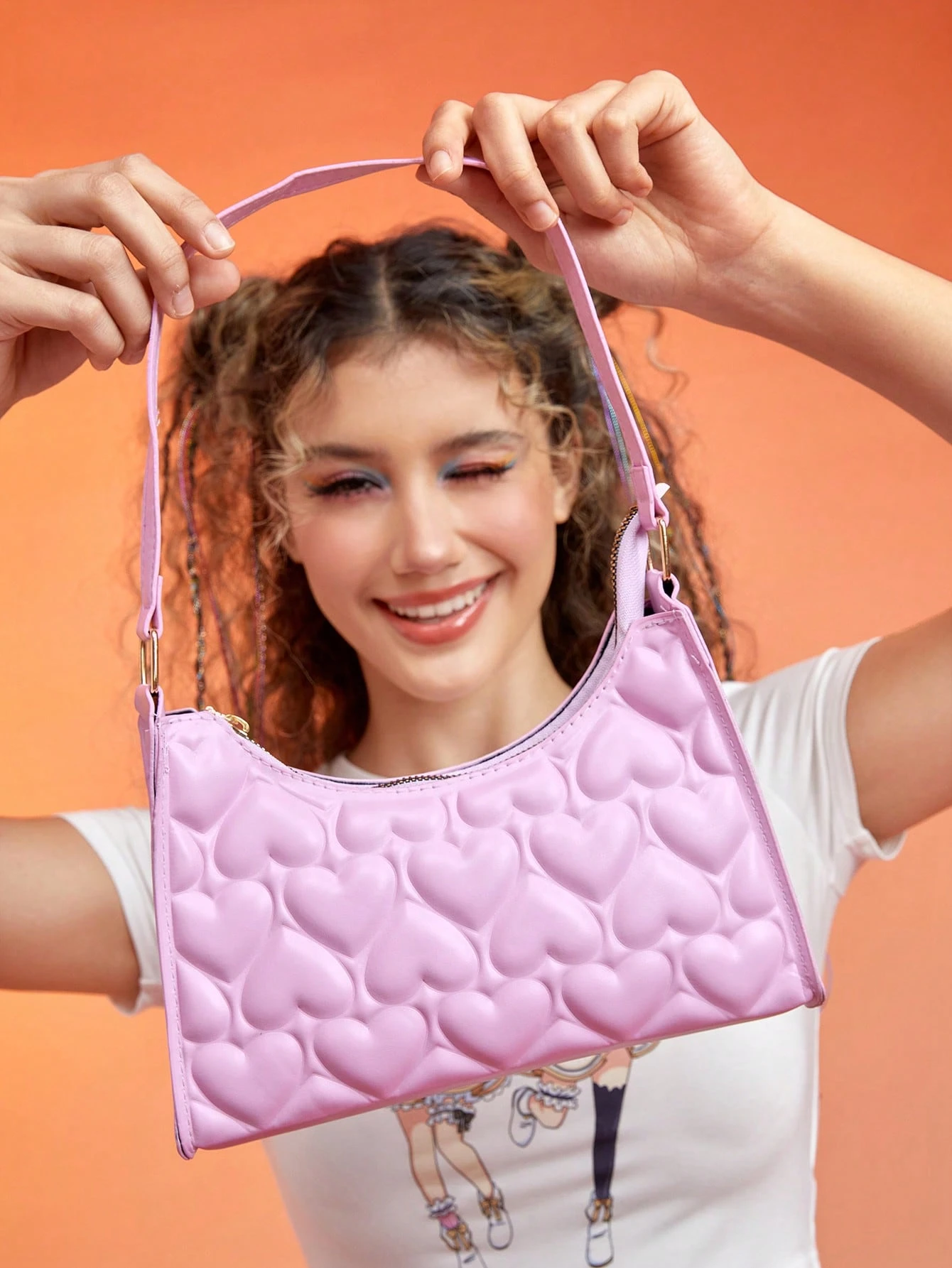 Anime Small Bag Cute Heart Embossed Zipper For Working
