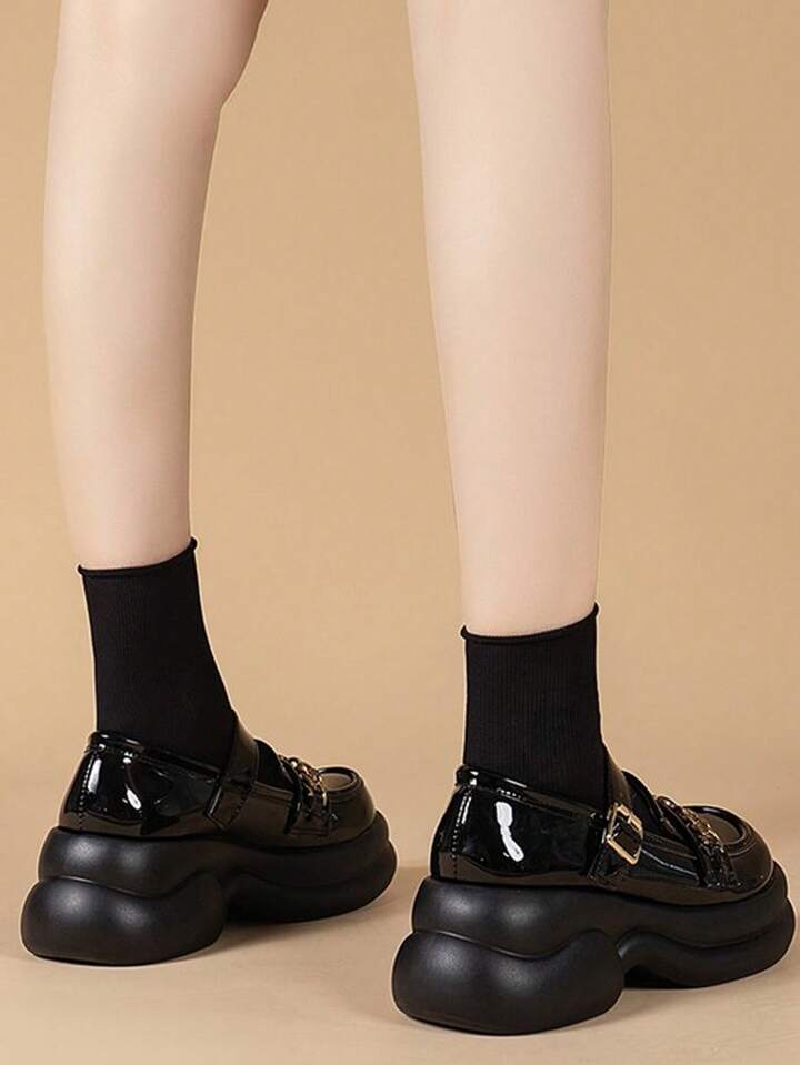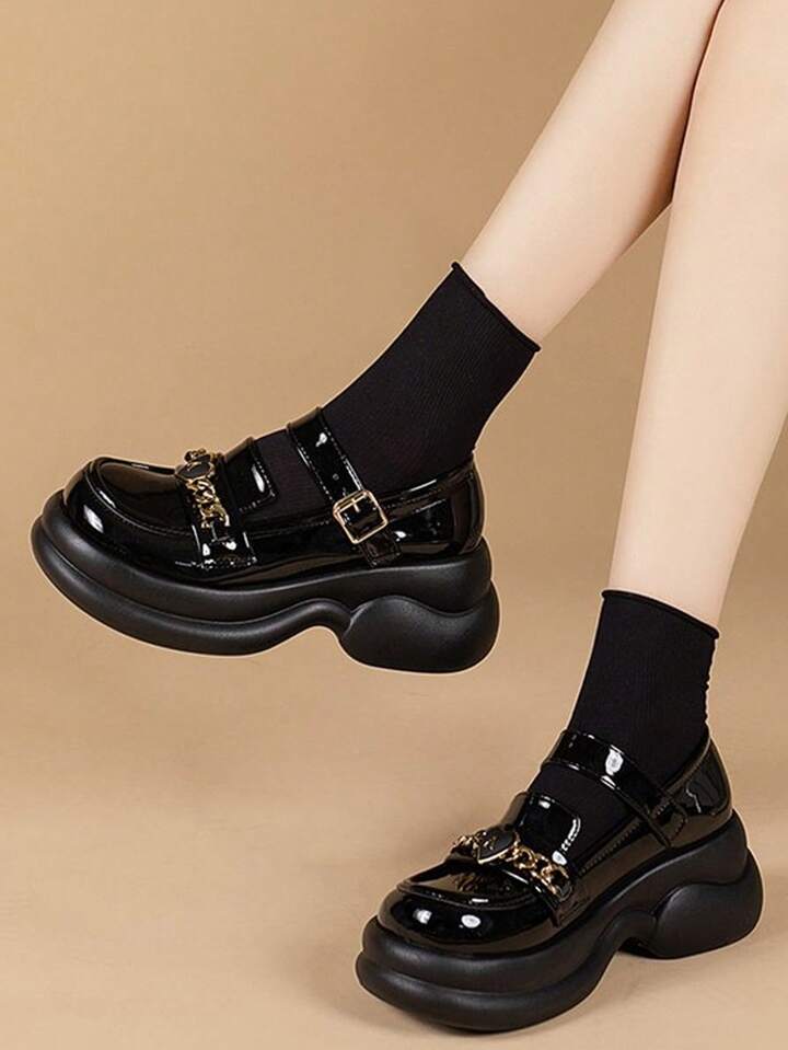 Anime Women Chain Decor Flatform Loafers, Preppy Outdoor Fashion Boots