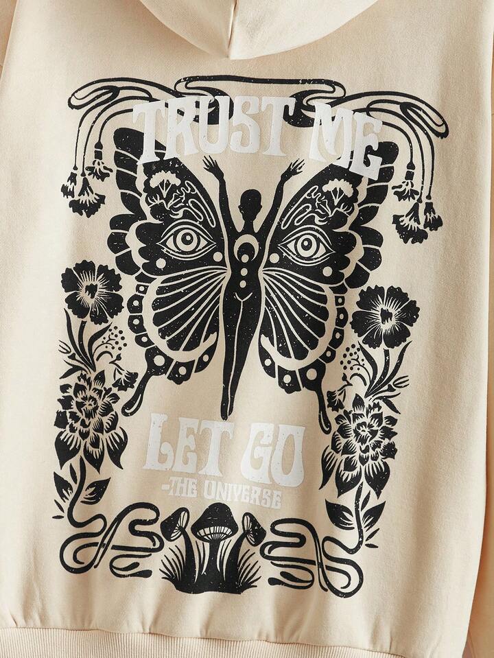 Ashley Baxter Women's Butterfly Letter Printed Hoodie With Kangaroo Pocket
