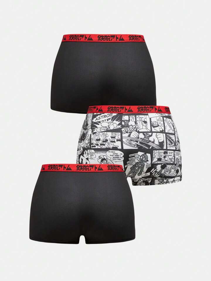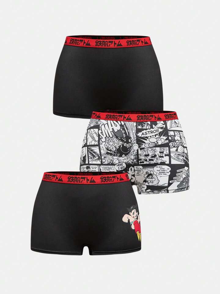 Astro Boy X ROMWE 3pcs/Set Women's Cartoon Graphic Contrast Tape Waist Boyshorts