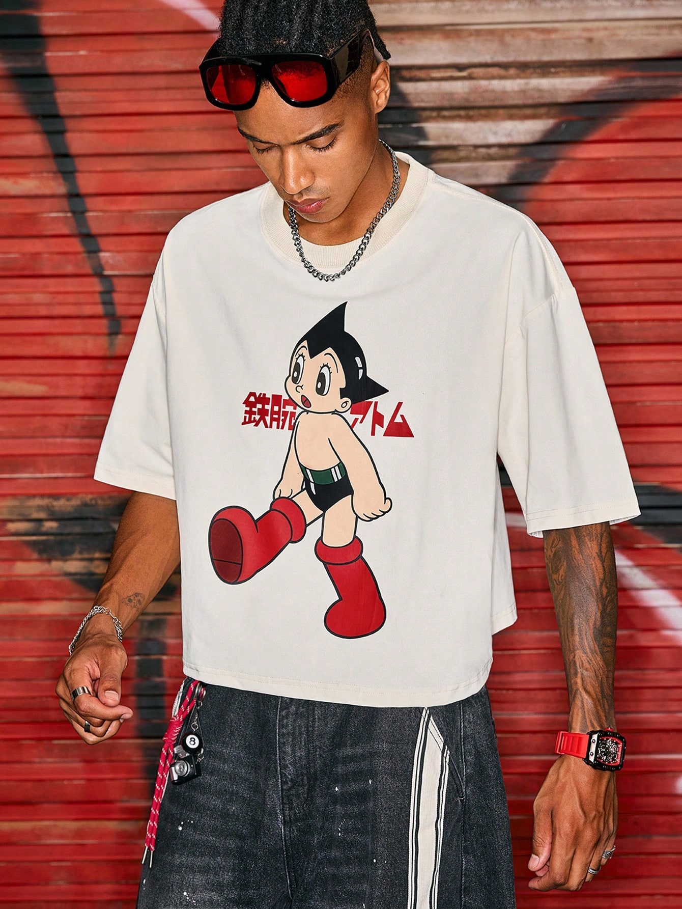 Astro Boy X ROMWE Men's Cartoon Figure Graphic T-Shirt, Loose Cropped Fit