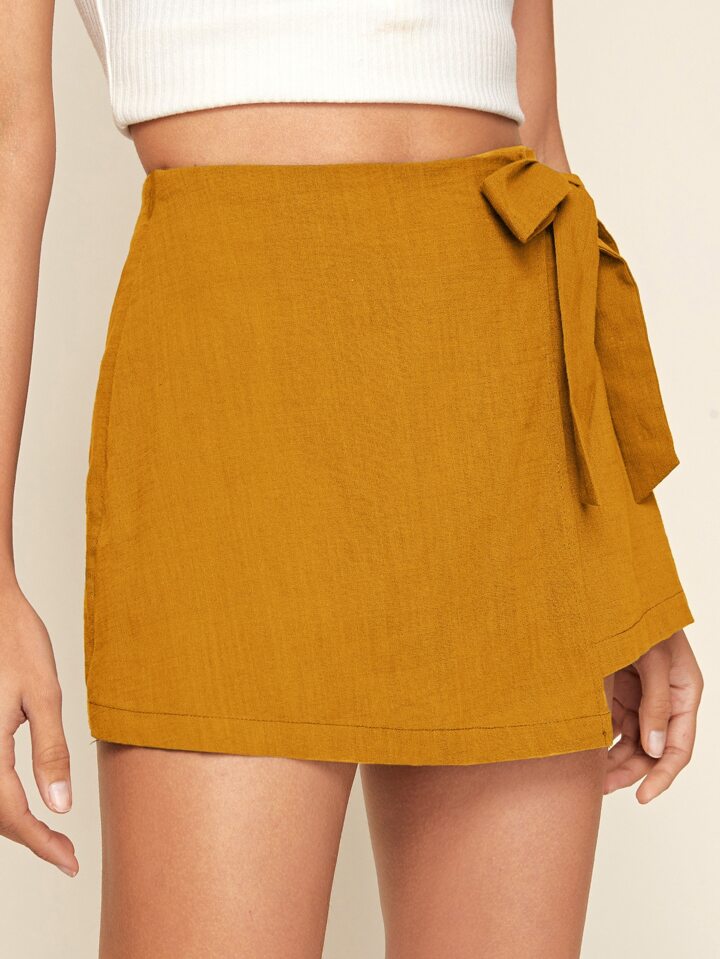 Asymmetrical Hem Wrap Knot Skort