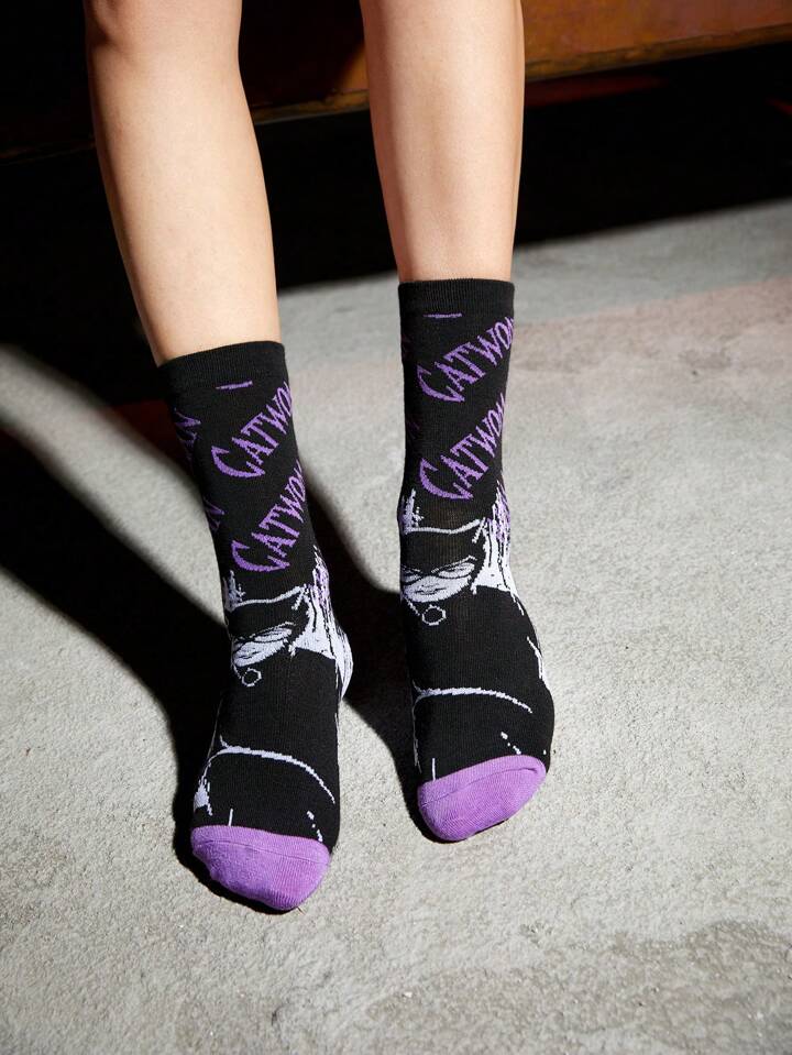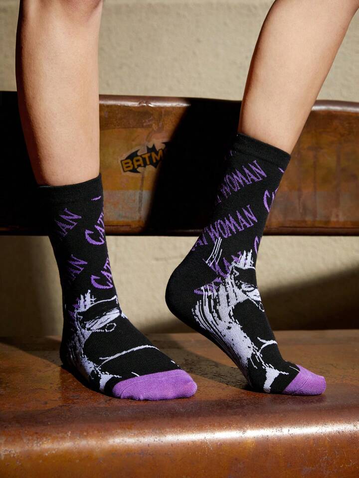 Batman X ROMWE 1pair Women Letter & Figure Graphic Crew Socks