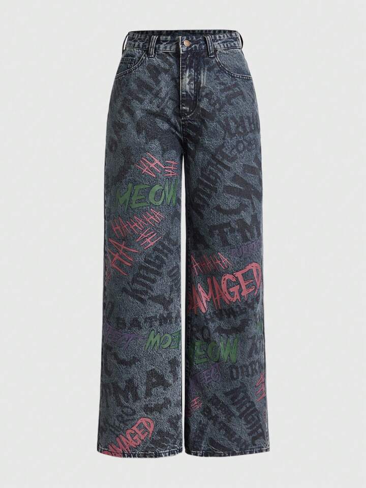 Batman X ROMWE Letter Graphic Wide Leg Jeans