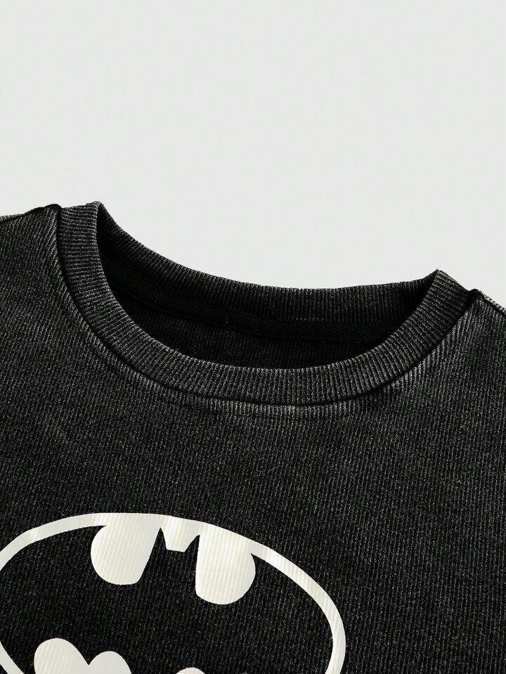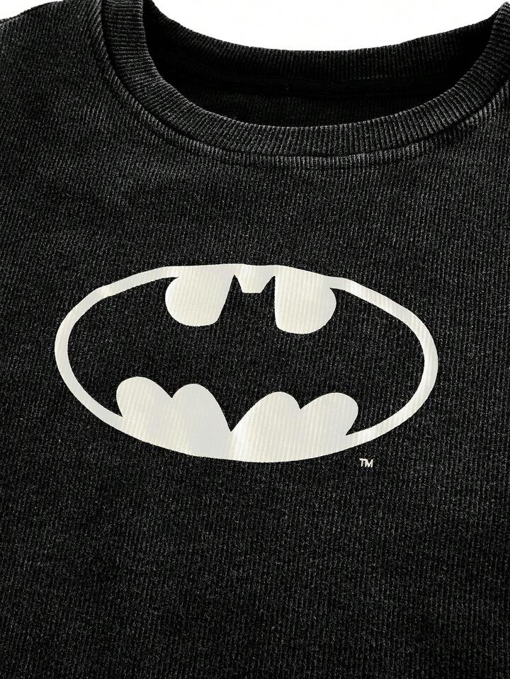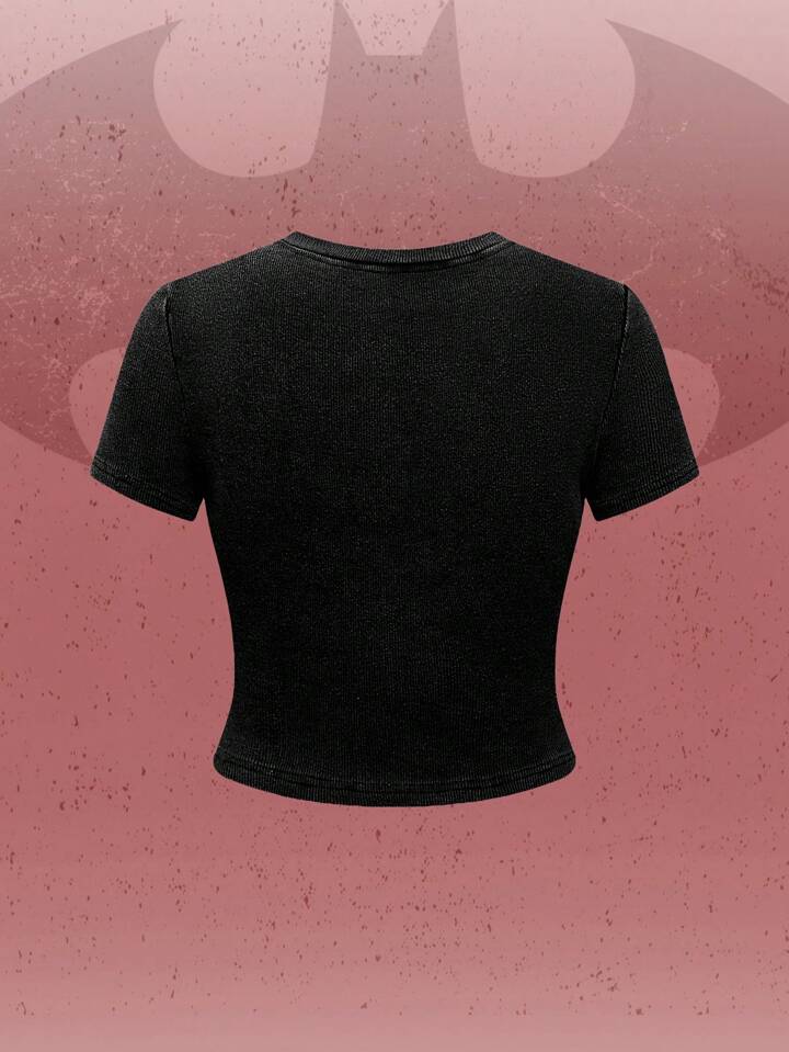 Batman X ROMWE Women Casual Bat Logo Print Fitted Washed Short Sleeve T-Shirt, Summer