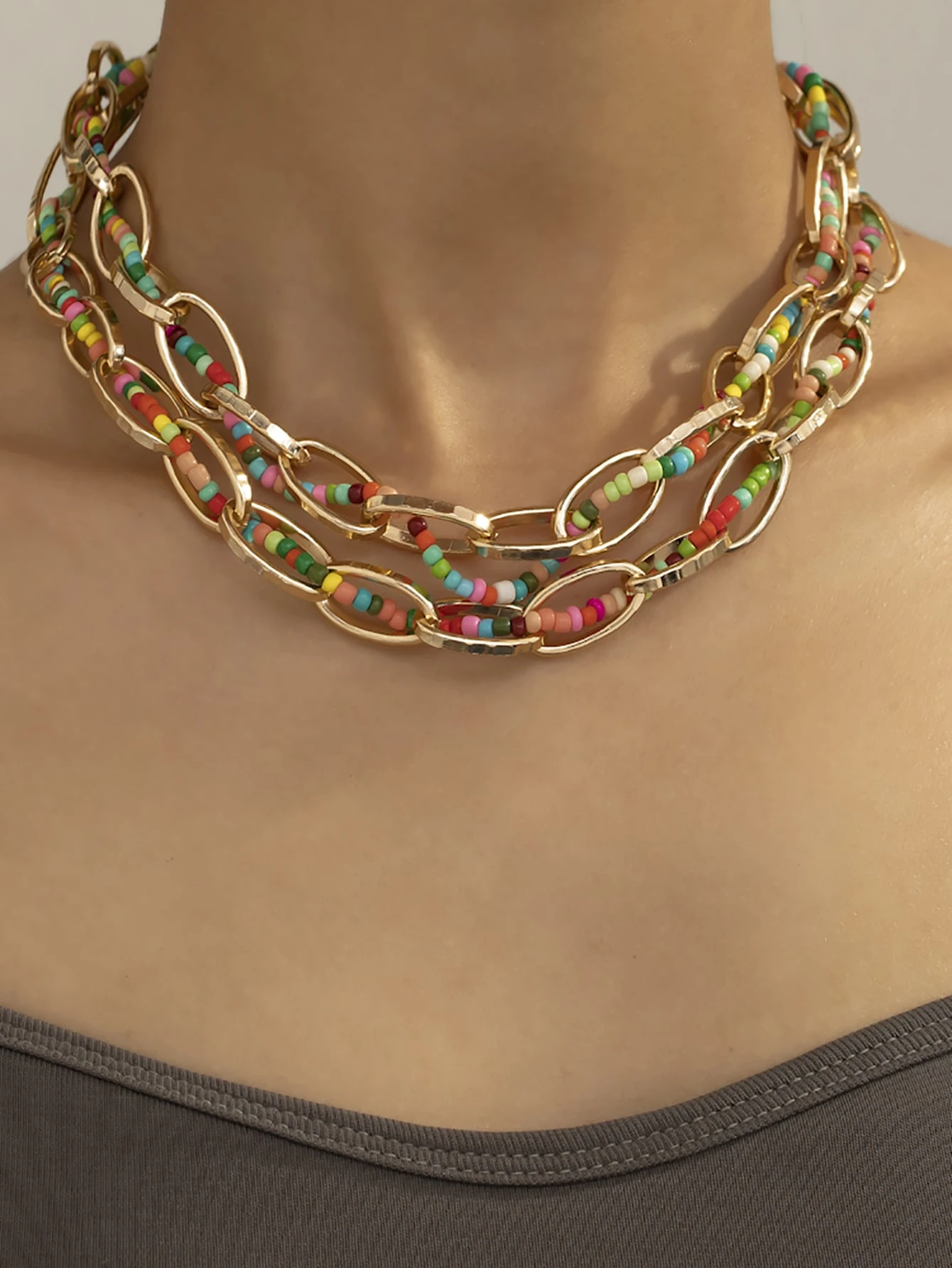 Beaded Design Layered Necklace