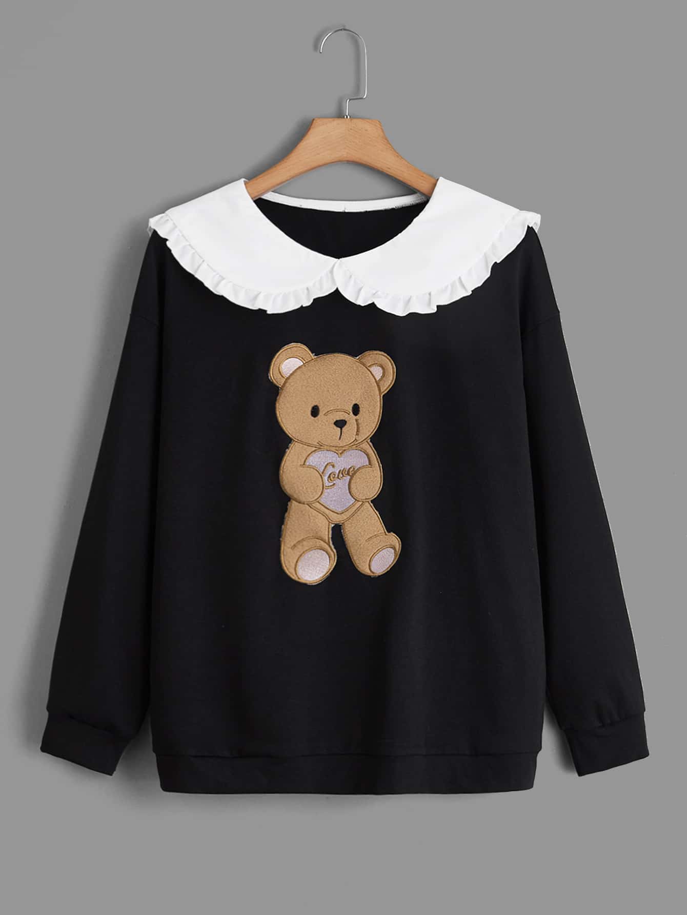 Bear Print Contrast Collar Sweatshirt