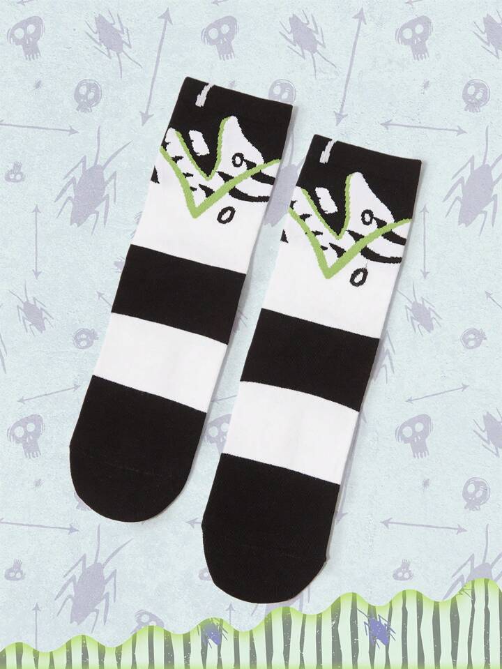 Beetlejuice | ROMWE 1 Pair Jacquard Pattern Mid-Calf Women Socks
