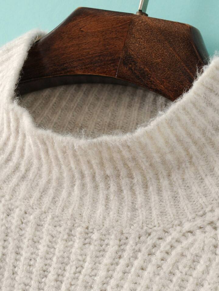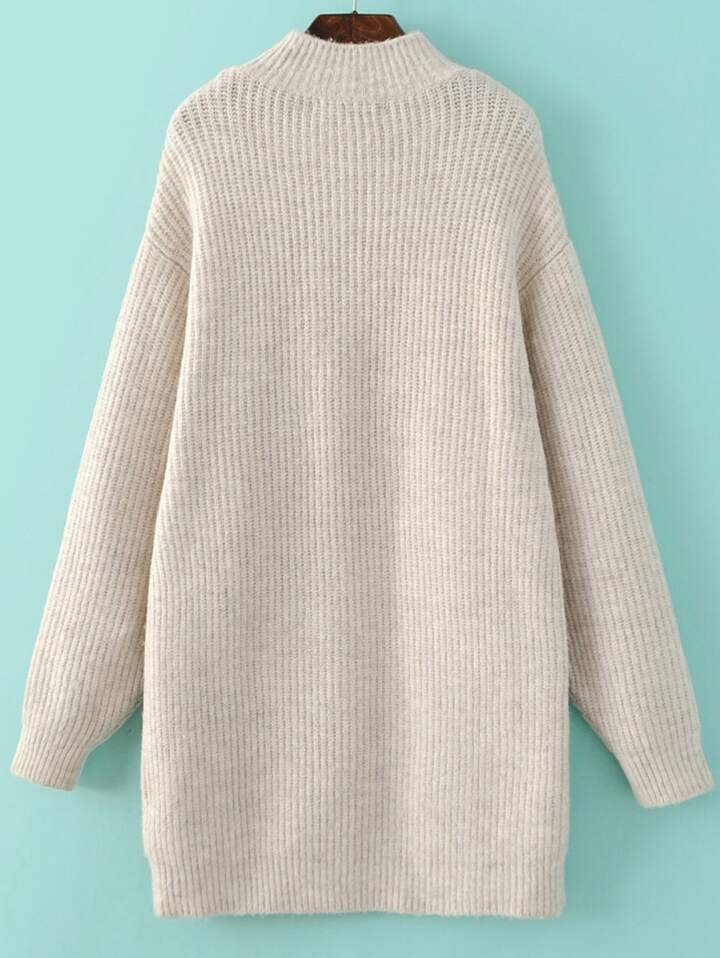 Beige Mock Neck Drop Shoulder Sweater Dress